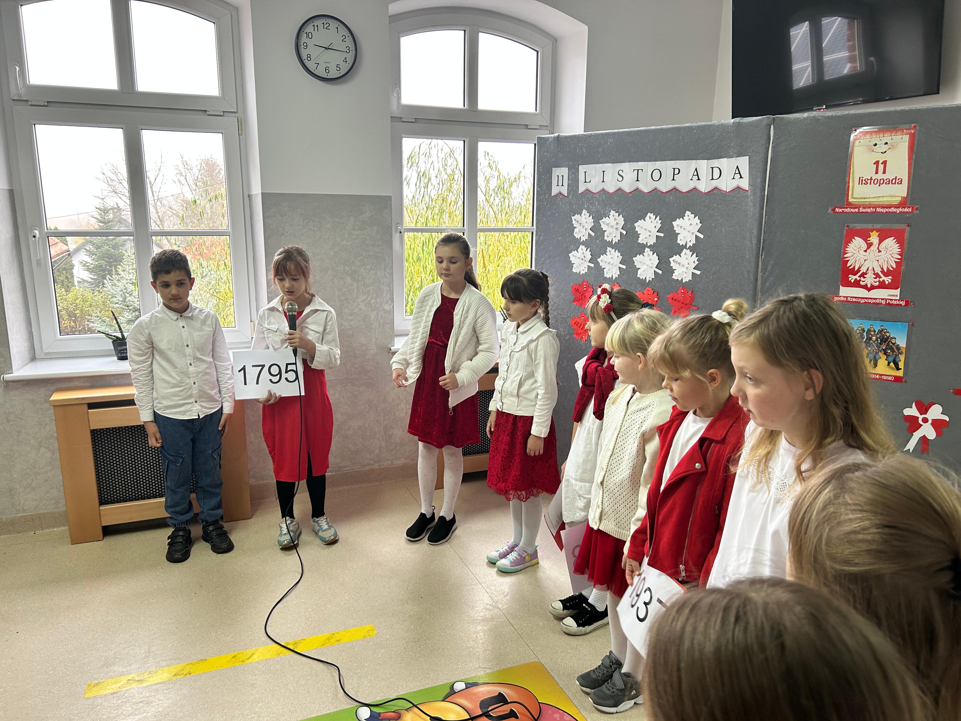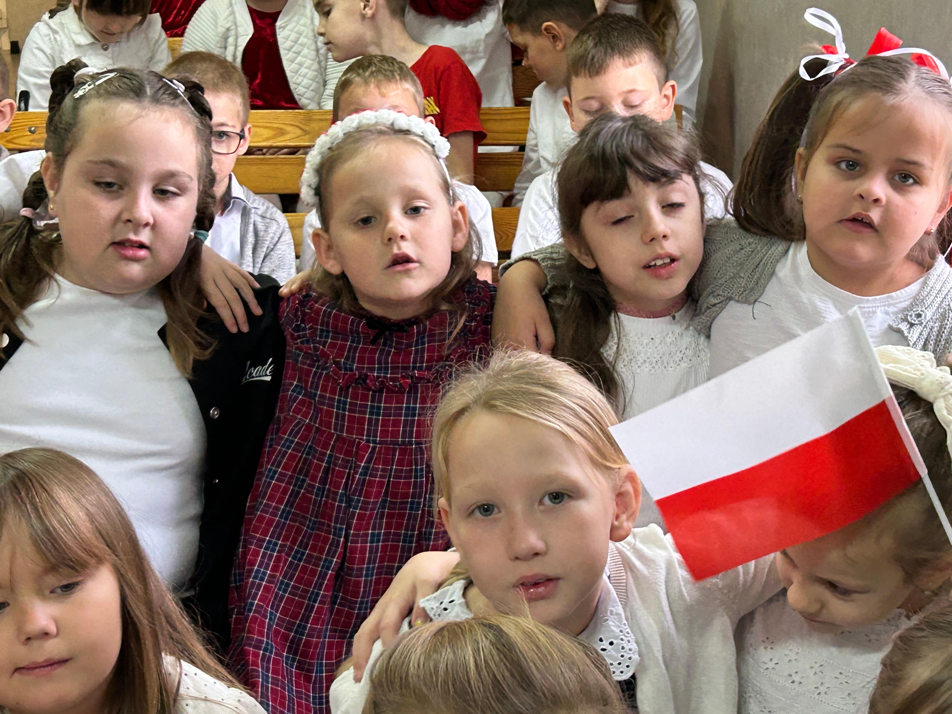 7 listopada 2025 roku w naszej szkole odbył się uroczysty apel z okazji Narodowego Święta Niepodległości. Wzięły w nim udział wszystkie dzieci z grup przedszkolnych i klas I–III. Uroczystość rozpoczęła się od wspólnego odśpiewania hymnu narodowego „Mazurek Dąbrowskiego”. Dzieci zachowały powagę i z dumą śpiewały cztery zwrotki hymnu. Następnie uczniowie z klas II i III zaprezentowali przedstawienie słowno-muzyczne, przybliżające historię odzyskania przez Polskę niepodległości, przypominając wszystkim, jak ważna jest wolność i miłość do ojczyzny. Występujące dzieci recytowały wiersze o ojczyźnie i wolności, śpiewały patriotyczne piosenki, takie jak „Tu wszędzie jest moja Ojczyzna”, „Przybyli ułani pod okienko” czy „Serce w plecaku”. Podczas apelu panowała uroczysta i podniosła atmosfera. Apel był piękną lekcją historii i patriotyzmu, dostosowaną do wieku najmłodszych uczniów. Dzieci z zaangażowaniem uczestniczyły w uroczystości, a przygotowany program artystyczny wzbudził wiele wzruszeń i dumy z bycia Polakiem. /JS, MD/