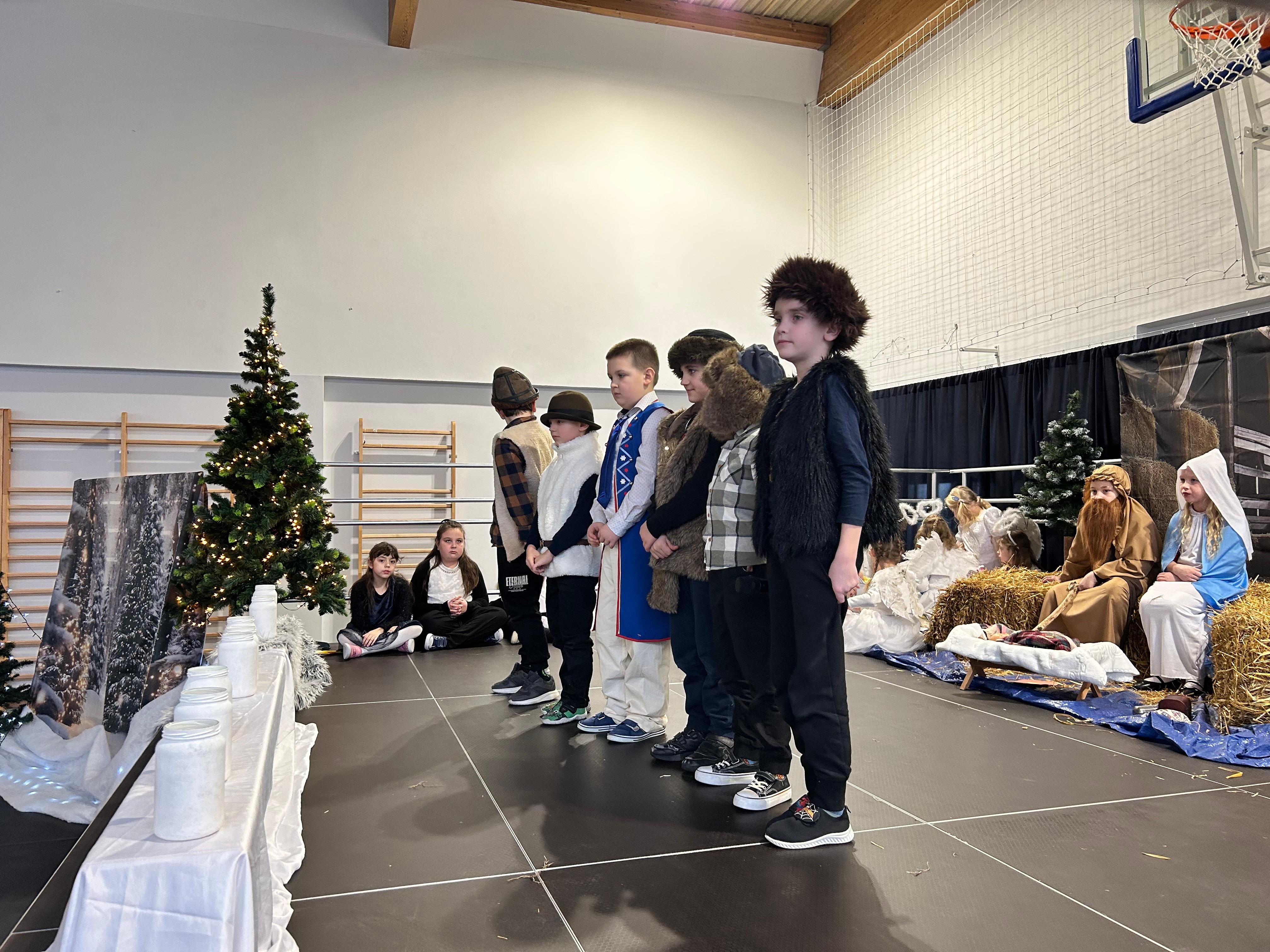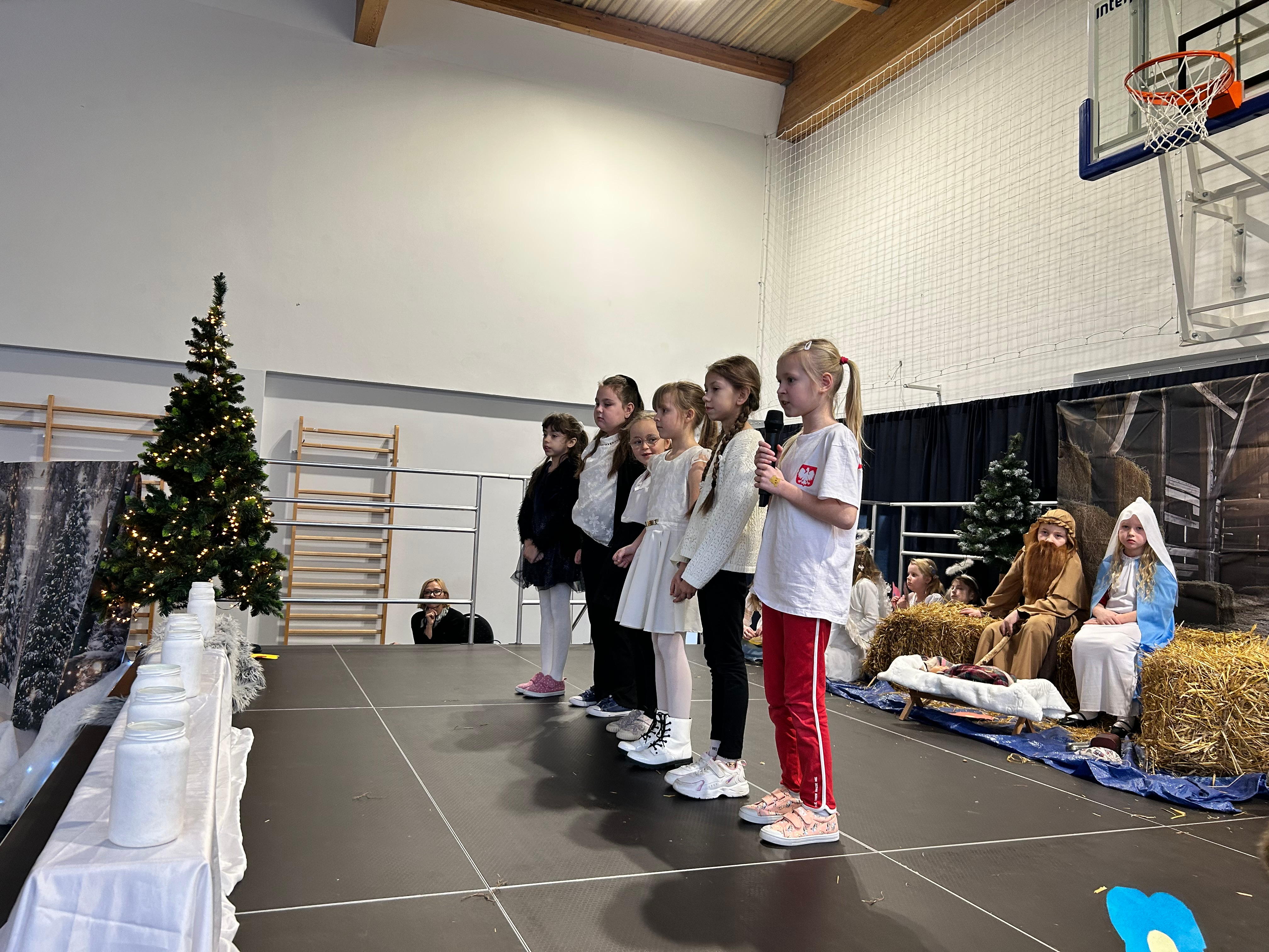 Spotkanie rozpoczęło się występem jasełkowym. Uczniowie z dużym zaangażowaniem odegrali swoje role, a piękne kolędy i pastorałki zostały nagrodzone gromkimi brawami.