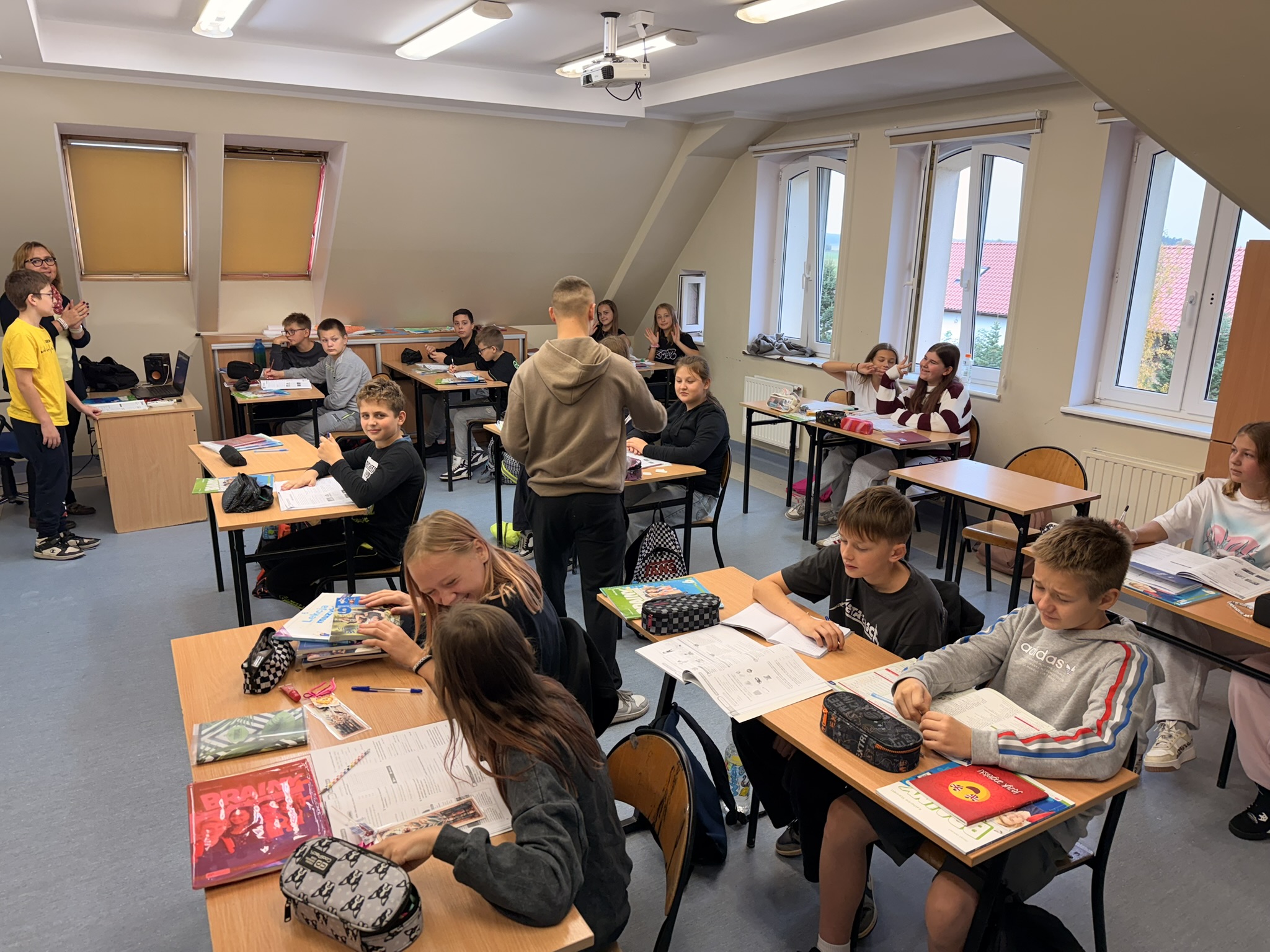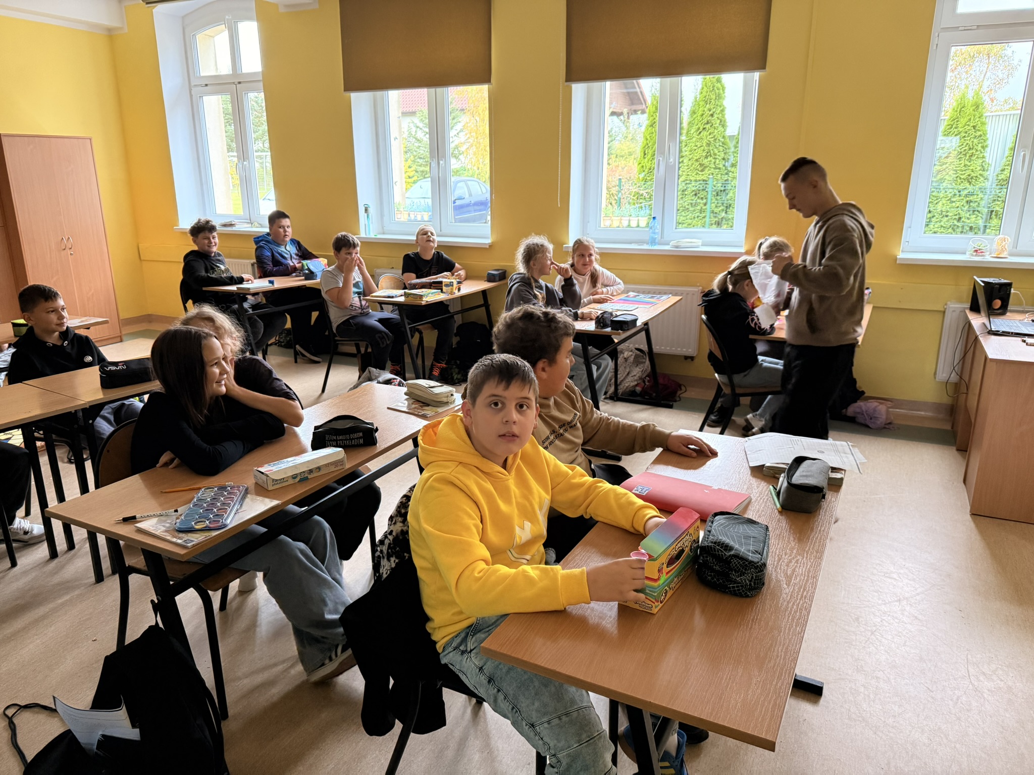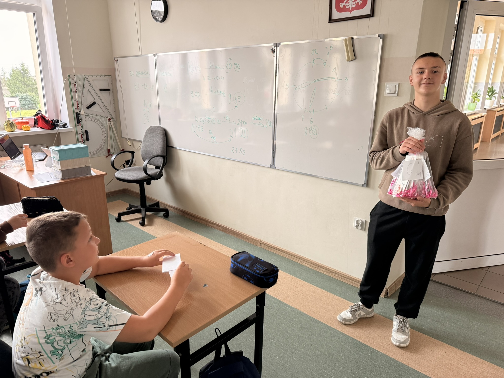 Niedawno obchodziliśmy Dzień Chłopaka, dzisiaj nadeszła pora na Dzień Dziewczynek. Z tej okazji Sebastian i Tymon, jako przedstawiciele męskiej części społeczności szkolnej, odwiedzili wszystkie klasy z najlepszymi życzeniami i słodkim drobiazgiem od Rady Rodziców. Najlepsze życzenia dla wszystkich dziewczynek! /JR/