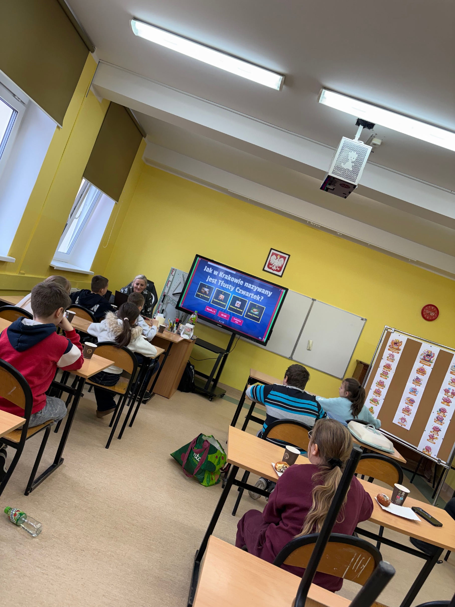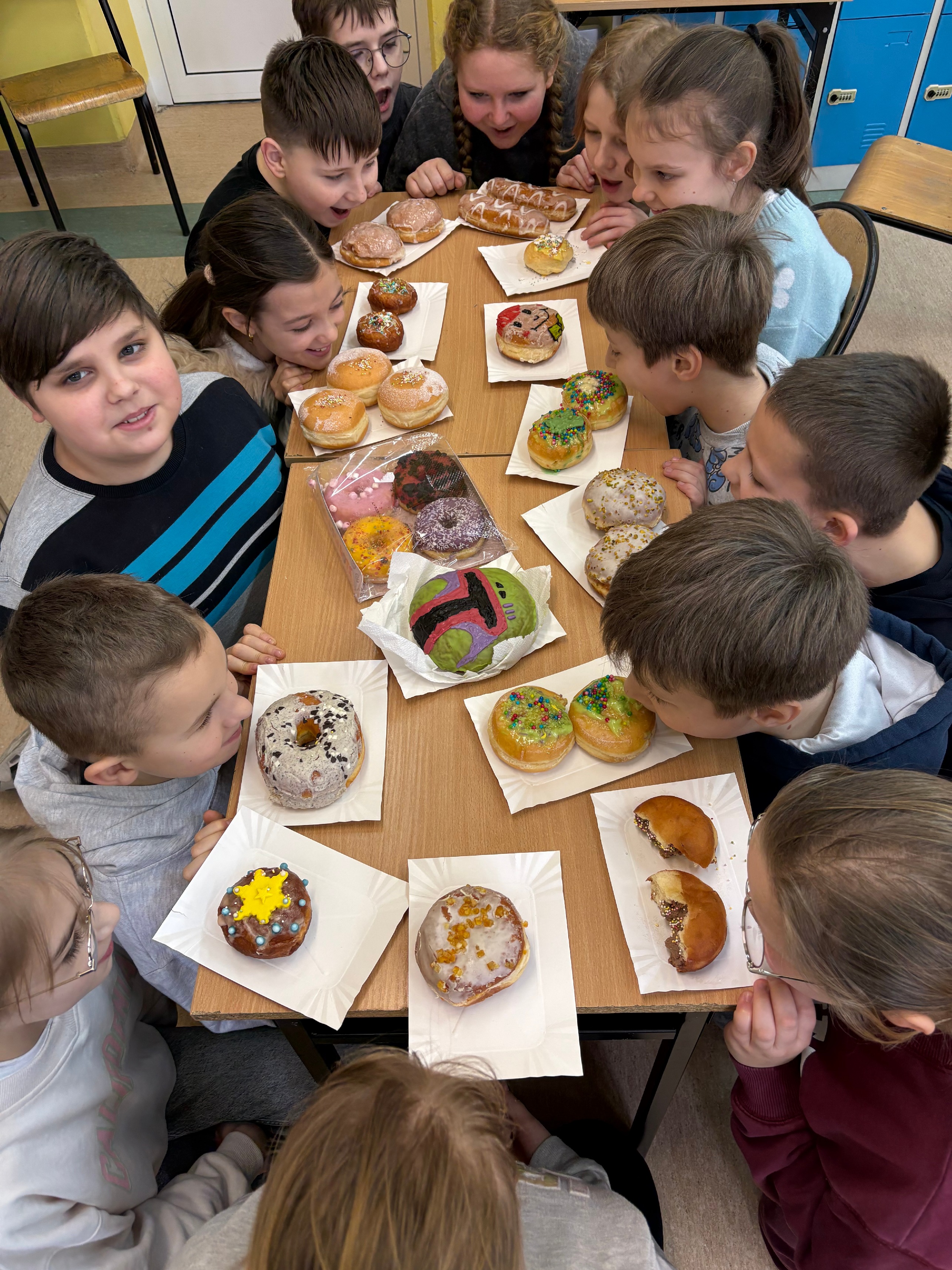 Na zakończenie lekcji wszyscy uczniowie otrzymali pączki oraz wzięli udział w zabawach integracyjnych, m.in.:
