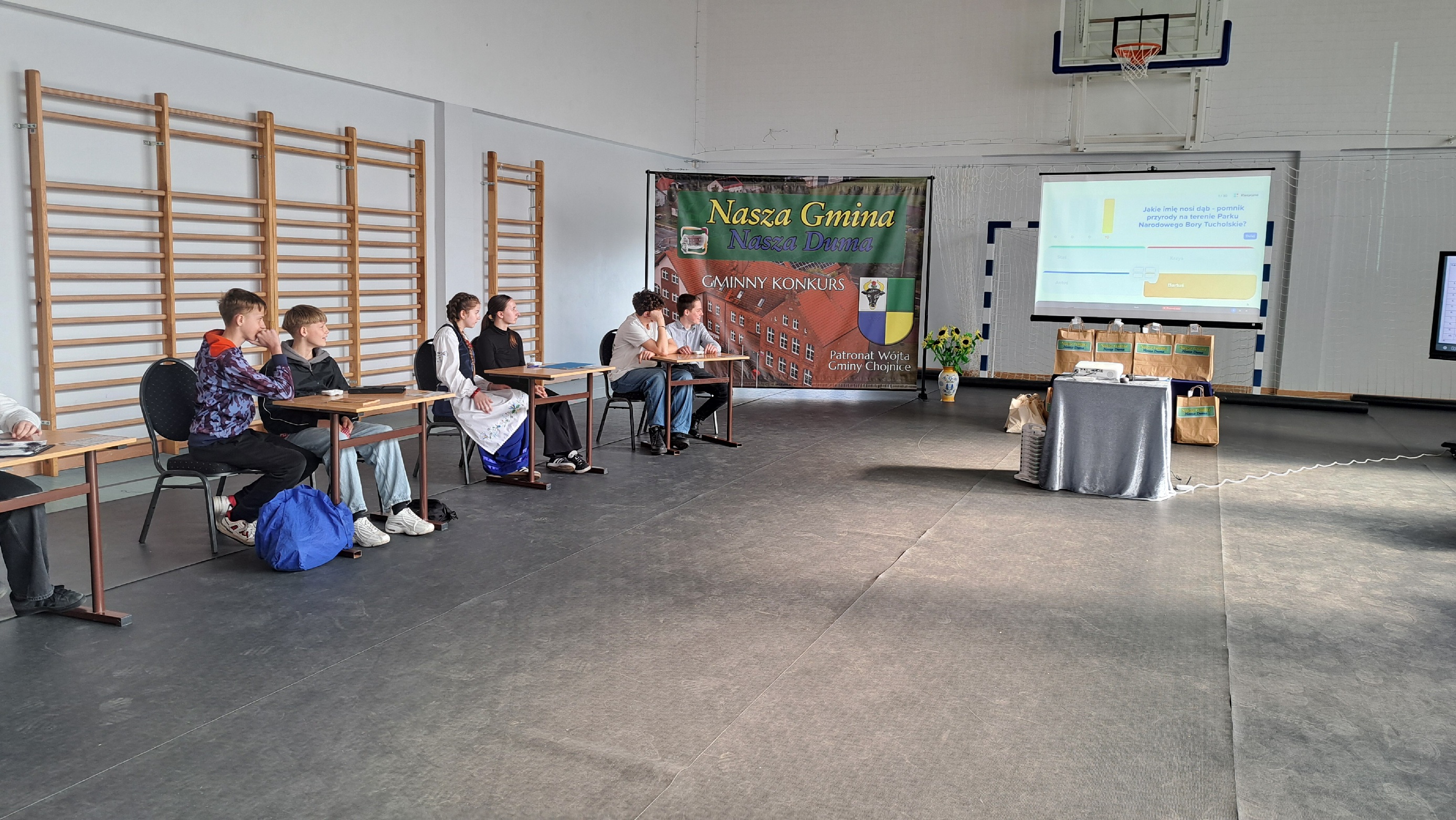 11 marca odbyło się w naszej szkole kolejne już spotkanie przedstawicieli szkół Gminy Chojnice i zaproszonych gości przy okazji Gminnego Konkursu "Nasza Gmina - Nasza Duma". Konkurs składał się z trzech etapów, pierwszym było omówienie plakatu "Nieznane Zakątki Mojej Miejscowości", a dwa kolejne związane były z quizami dotyczącymi wiedzy o naszej gminie. Wszystkie drużyny w ciekawy sposób zaprezentowały atrakcyjne miejsca w swoich okolicach, niejednokrotnie zaskakując zgromadzonych gości, opiekunów i uczestników konkursu.