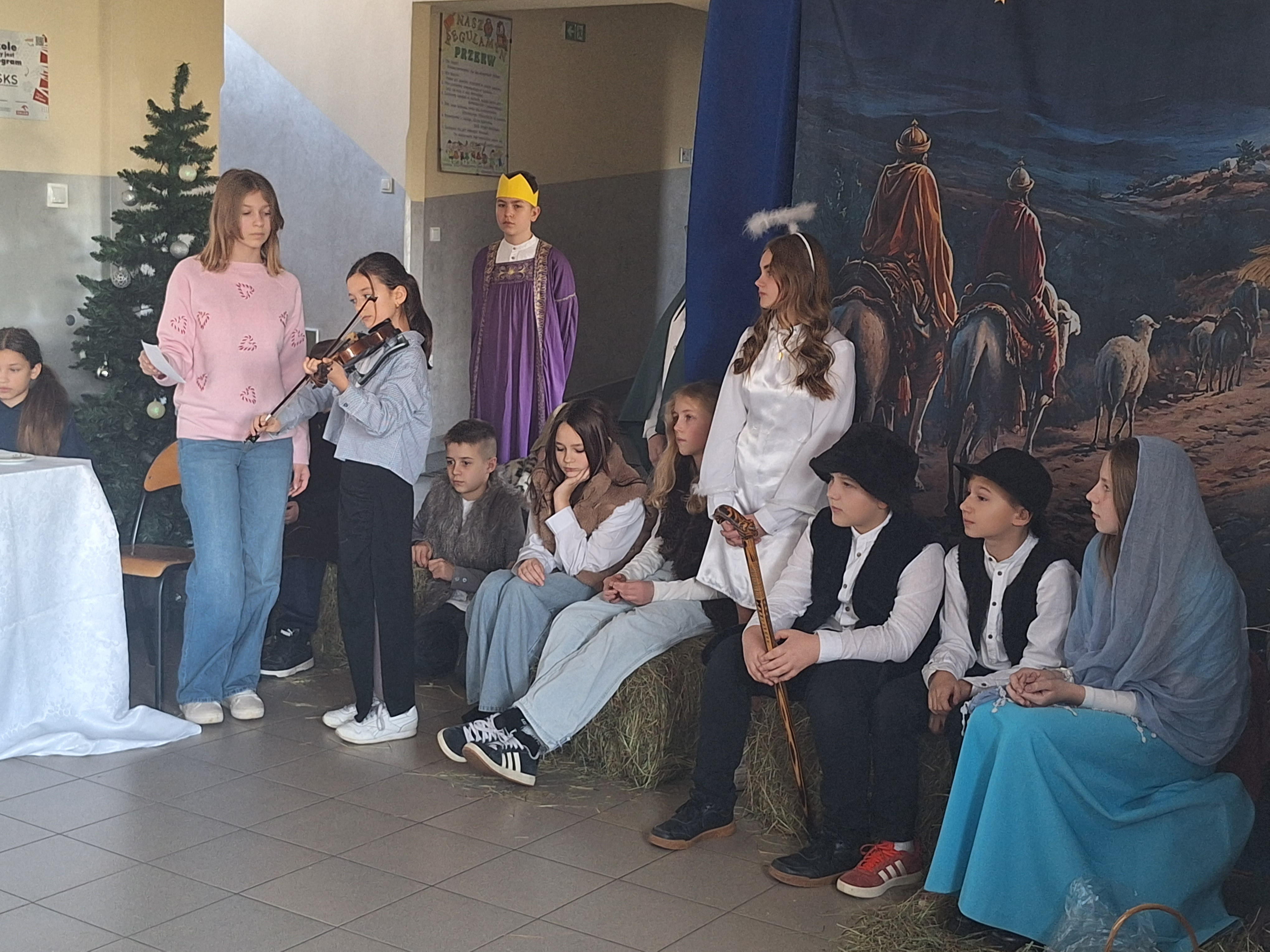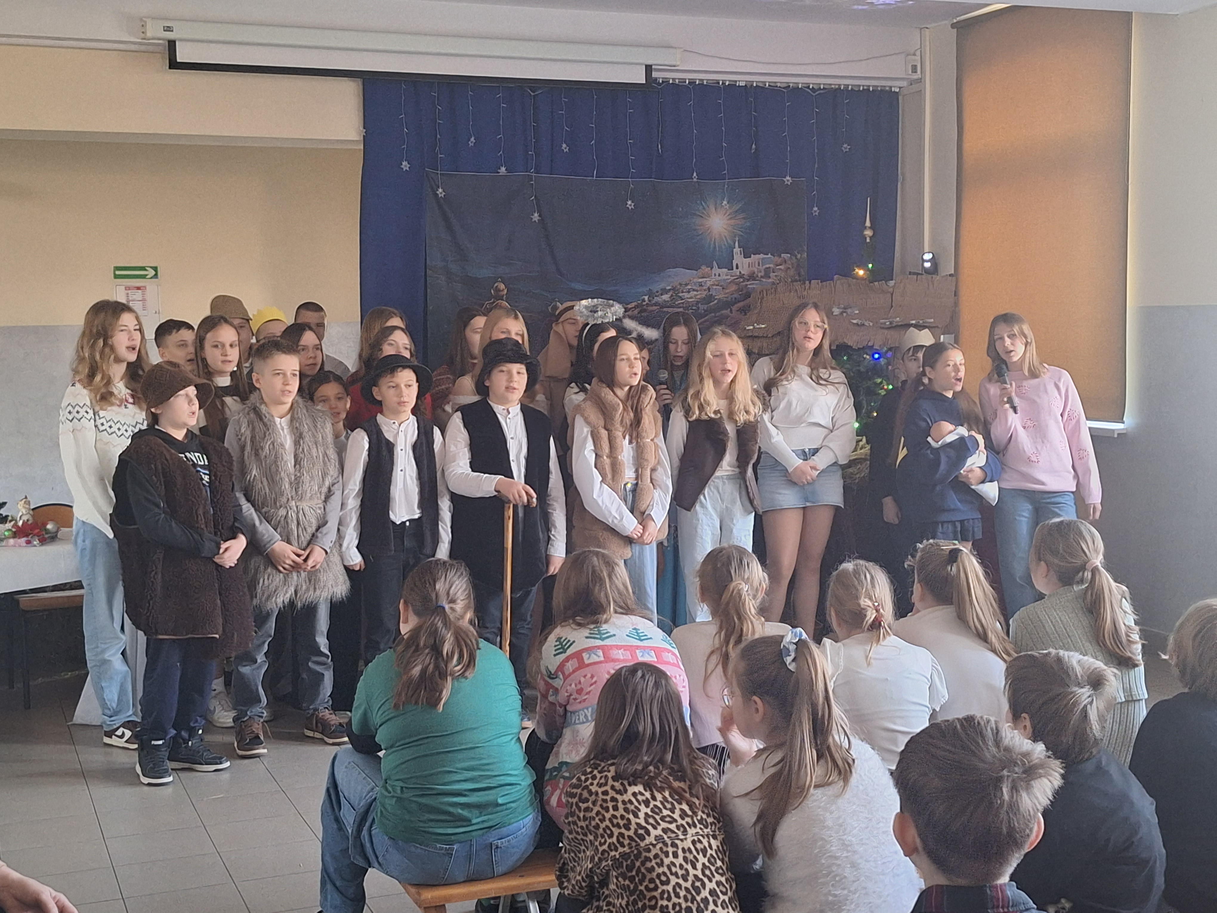 Ostatni grudniowy dzień w szkole to spotkania w klasach i tradcyjne przedstawienie jasełkowe. W tym roku tego zadania podjęli się uczniowie klas VI i VII pod opieką i ze wsparciem pani Ewy i pani Natalii i z pomocą wokalną dziewcząt z klasy VIII. Historia jest znana i co roku powtarzana, jednak za każdym razem przedstawiamy ją nieco inaczej i zawsze efekt jest taki sam - wprowadzamy się w magiczny świąteczny czas i podkreślamy prawdziwe znaczenie i historię świąt. /ER, NC/