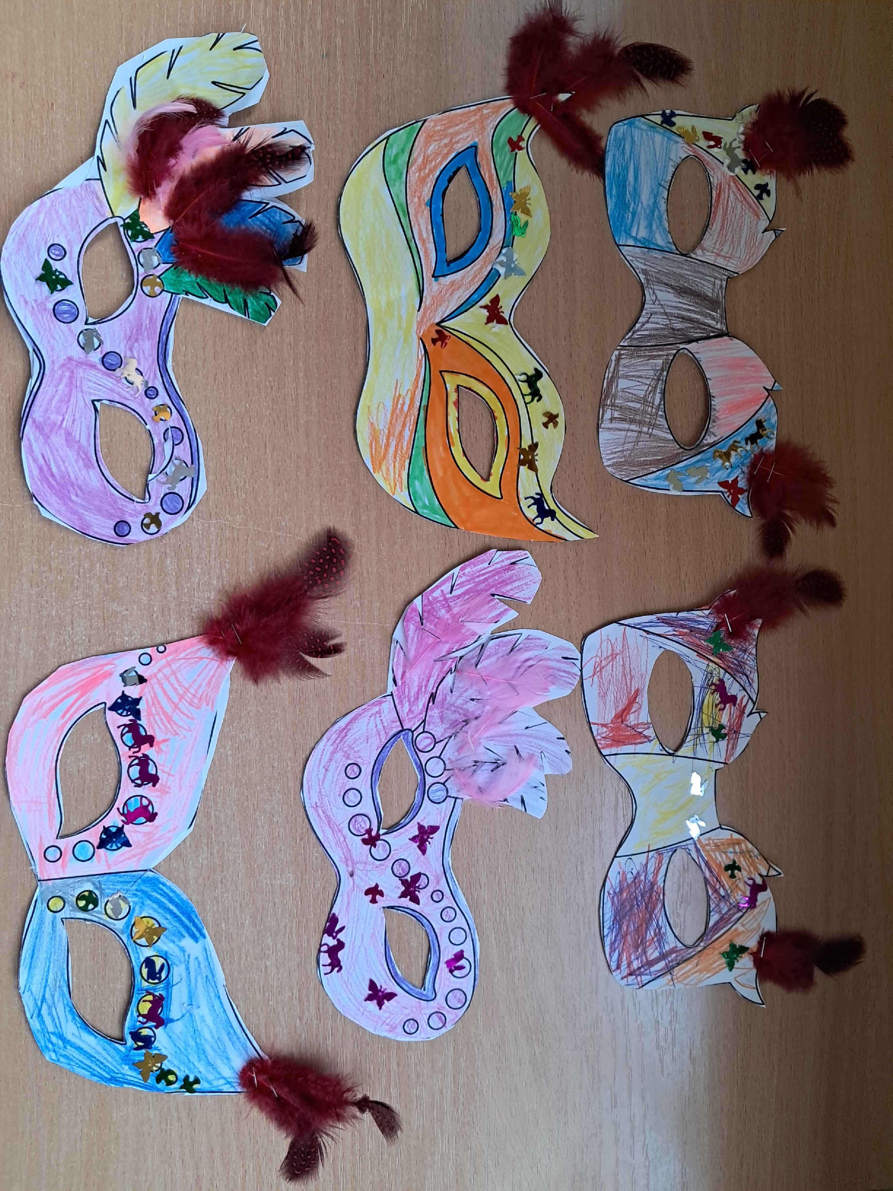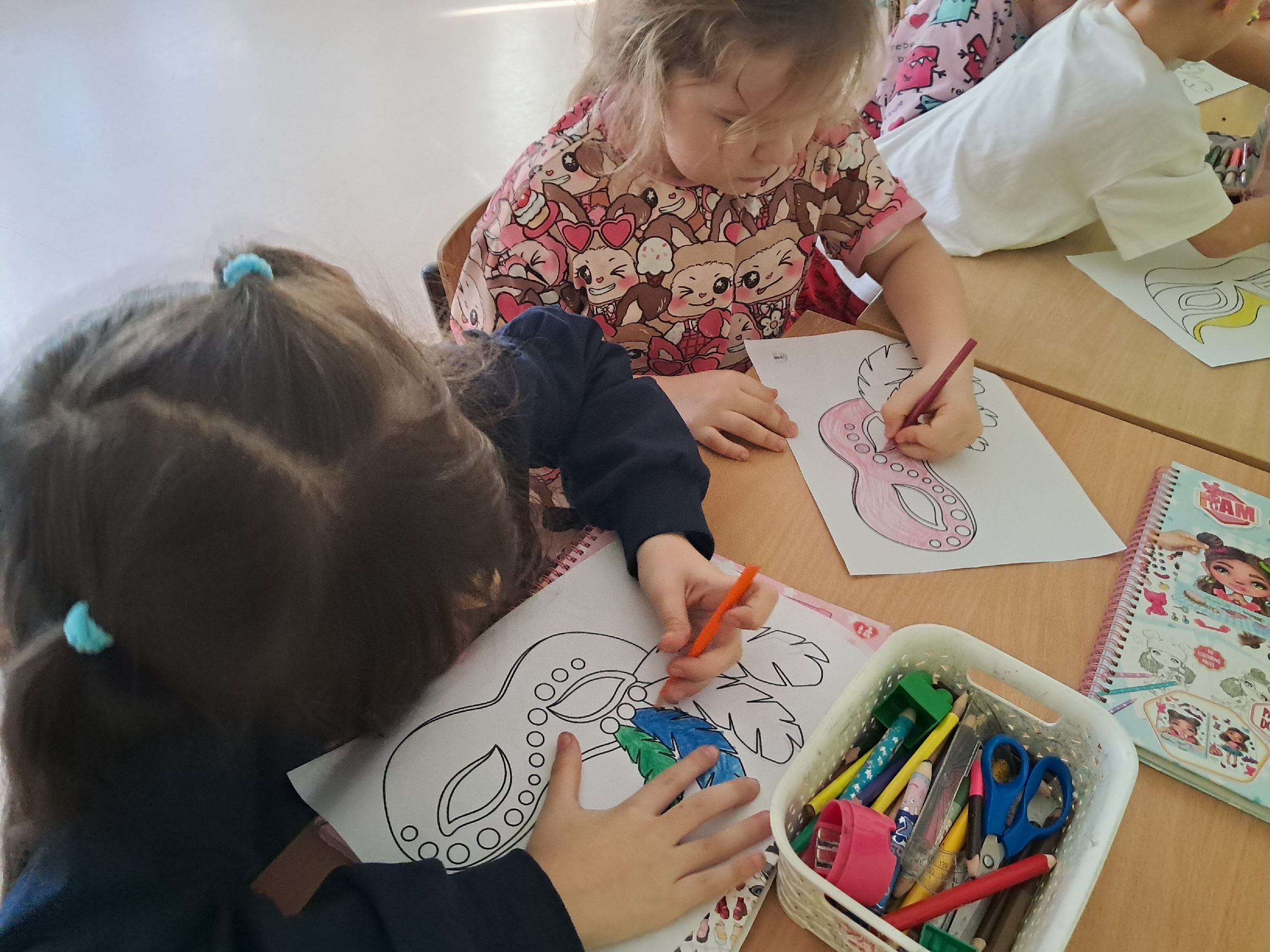 Cekiny, pióra i maski to popularne elementy kostiumów na bale karnawałowe. Przygotowania do karnawału na świetlicy już trwają.../KW/