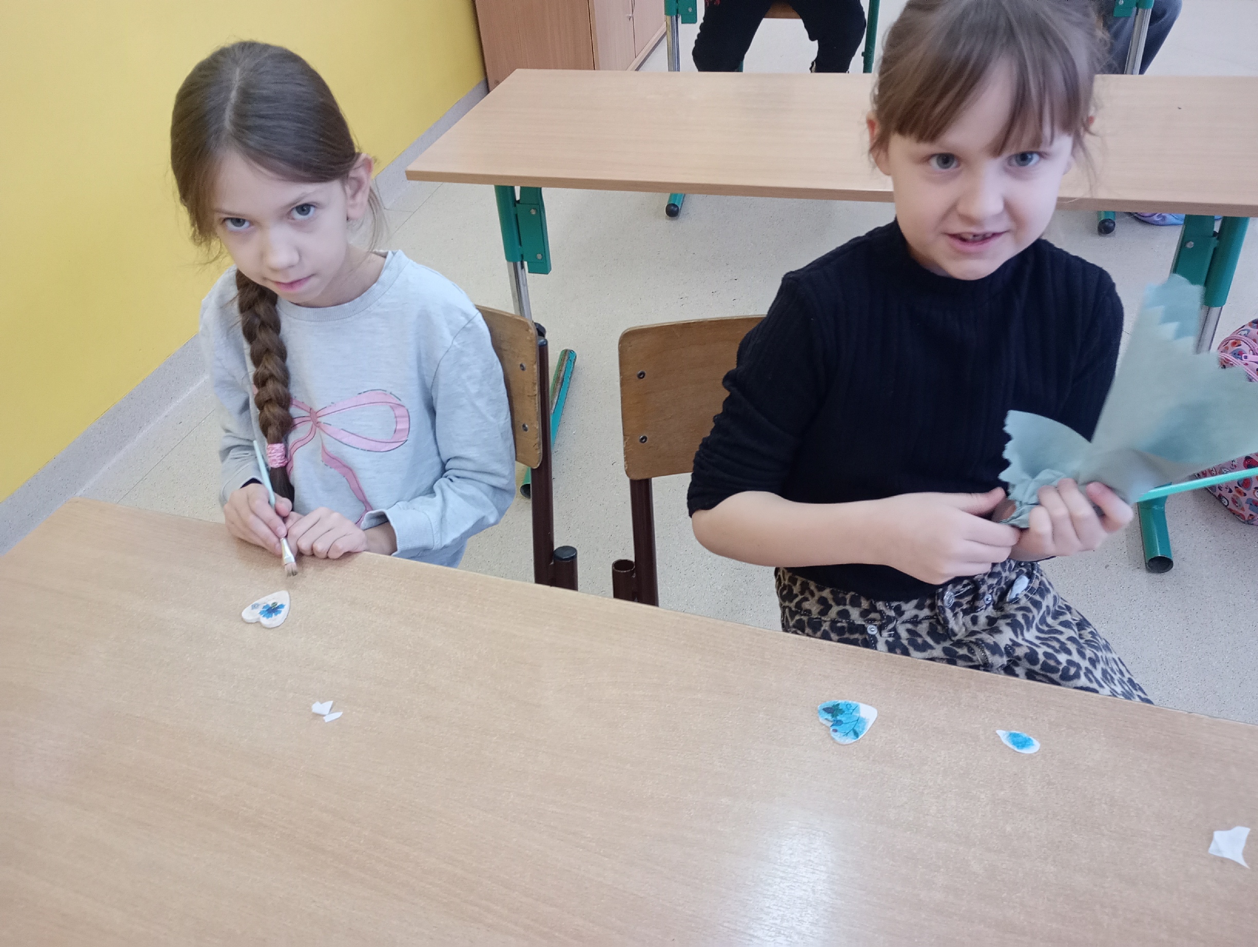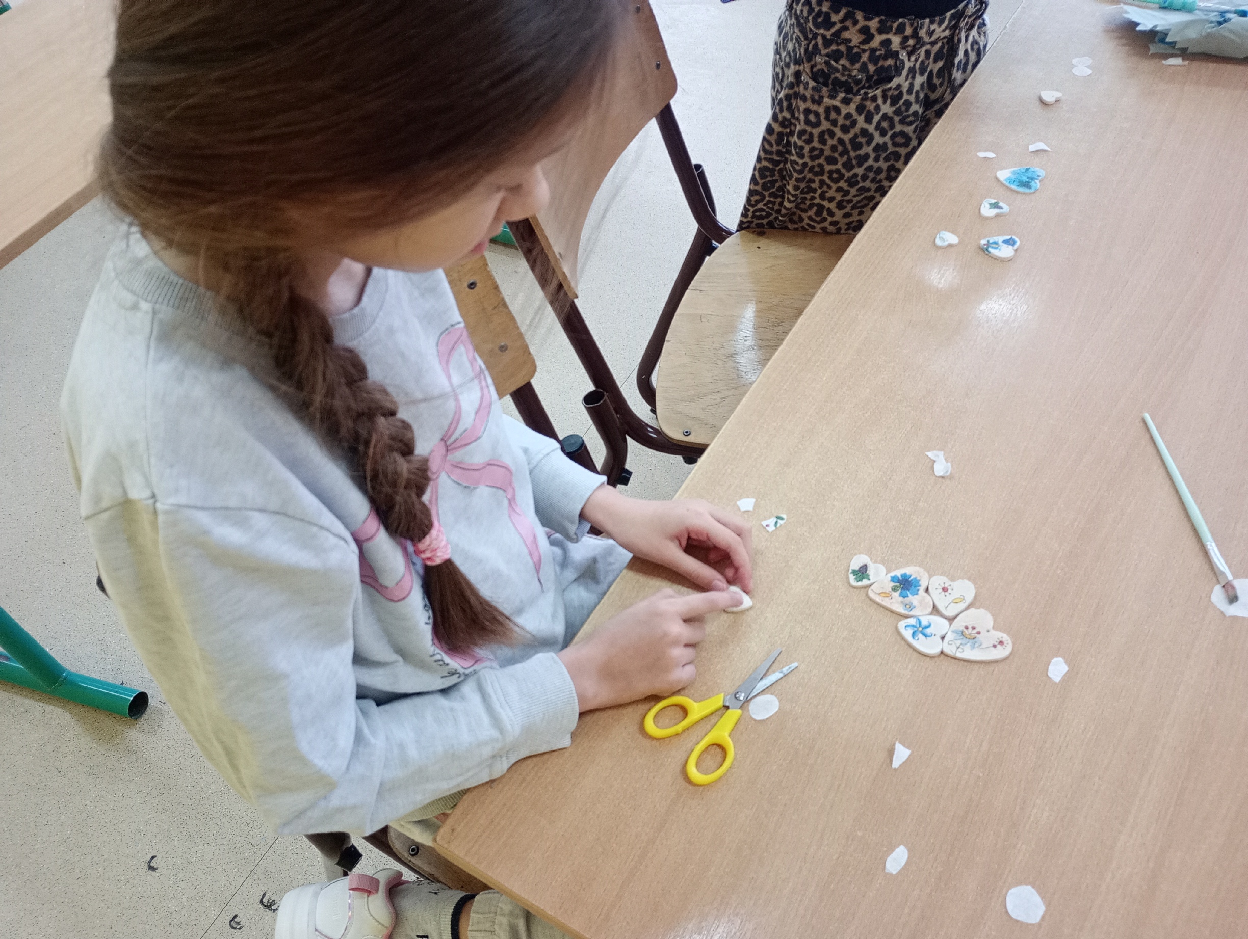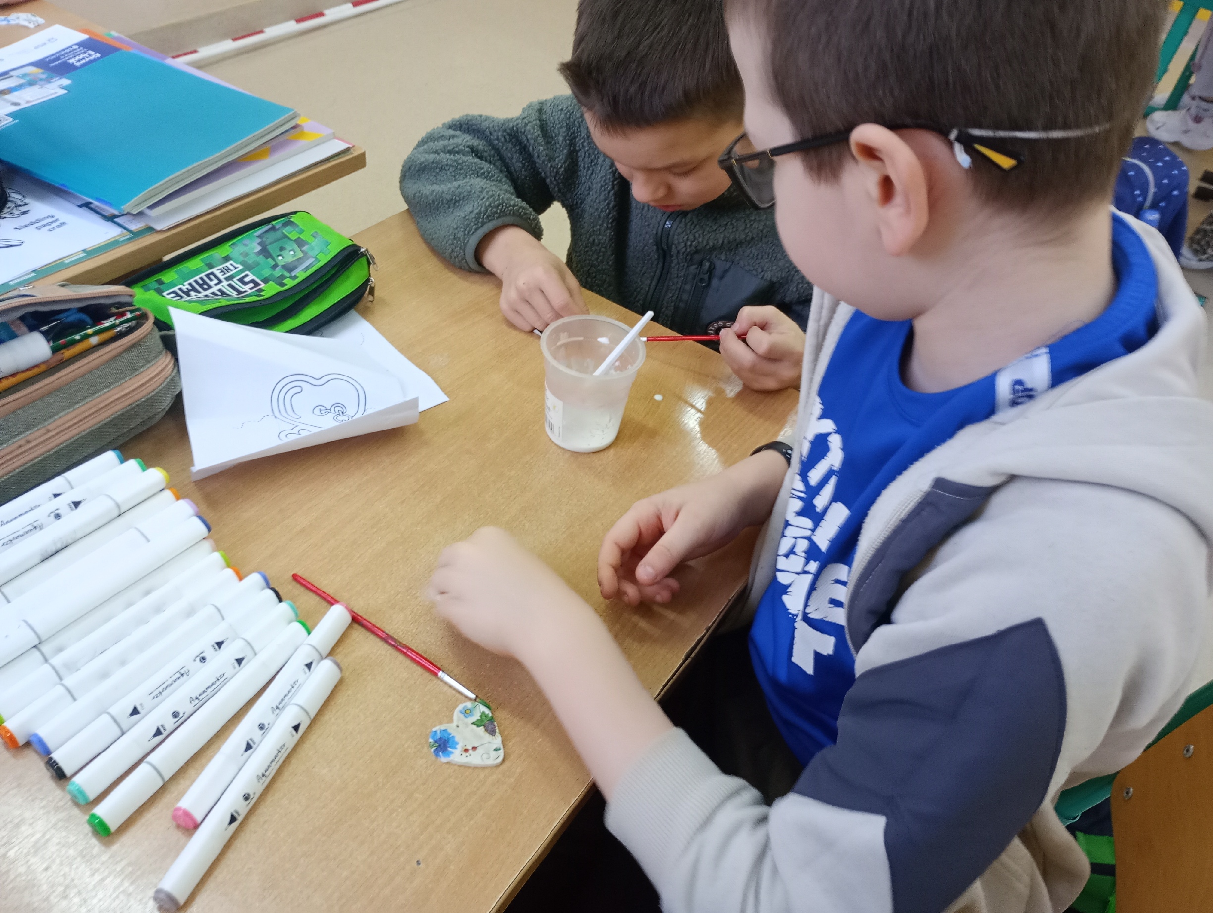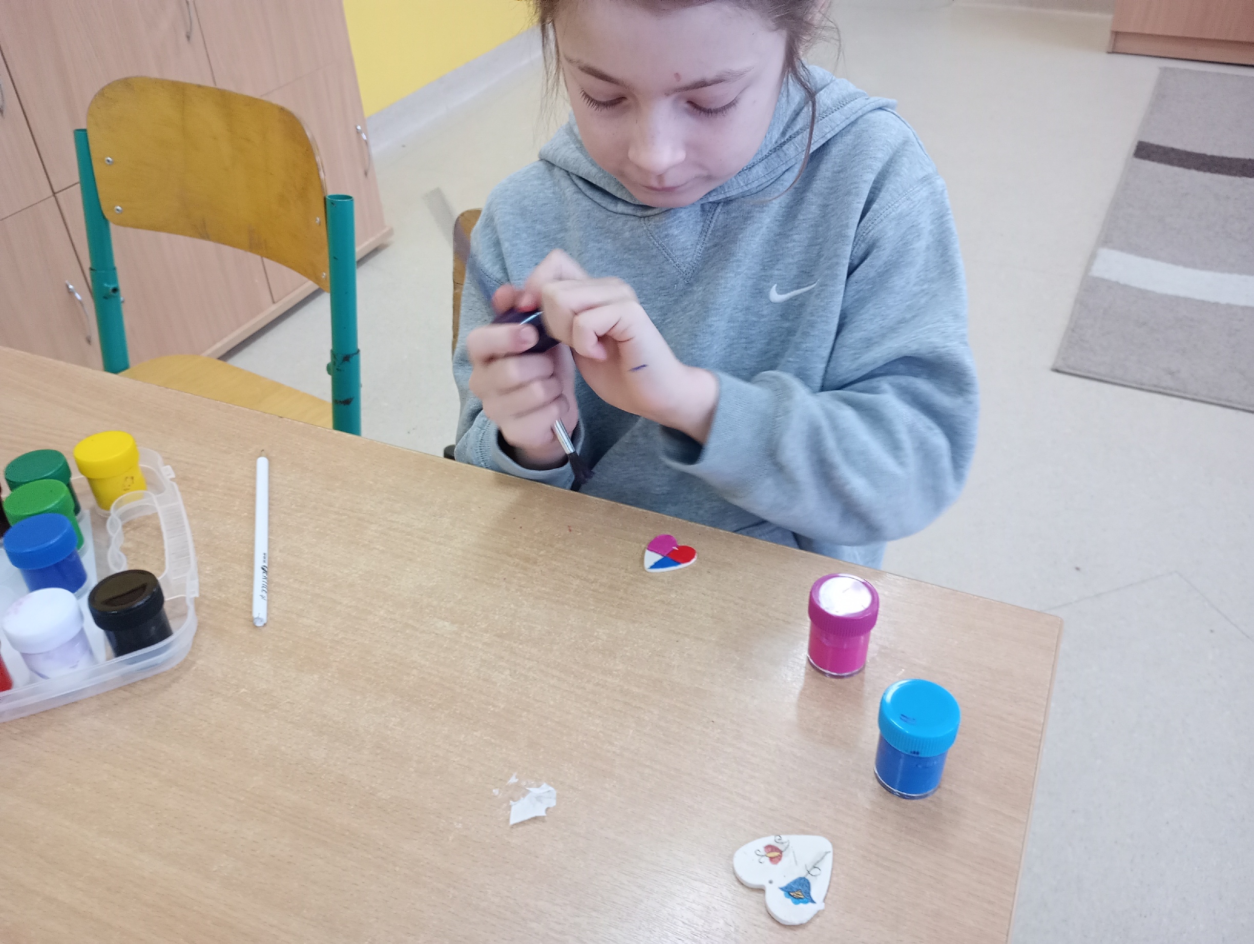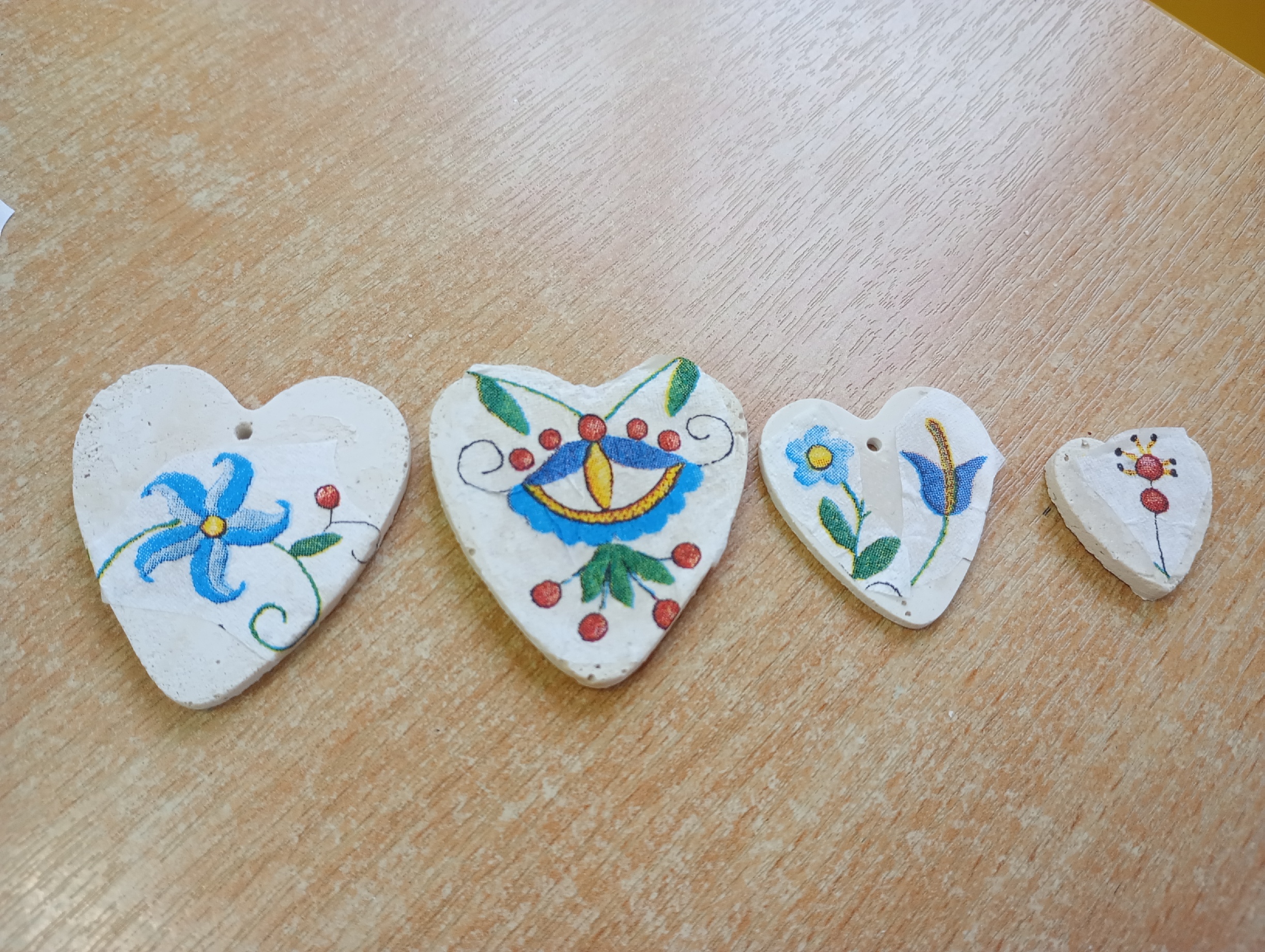 Uczniowie klasy 2 i 3 podczas zajęć z języka kaszubskiego przygotowali piękne, walentynkowe serduszka ozdobione metodą decoupage z wzorami kaszubskimi. /AK/