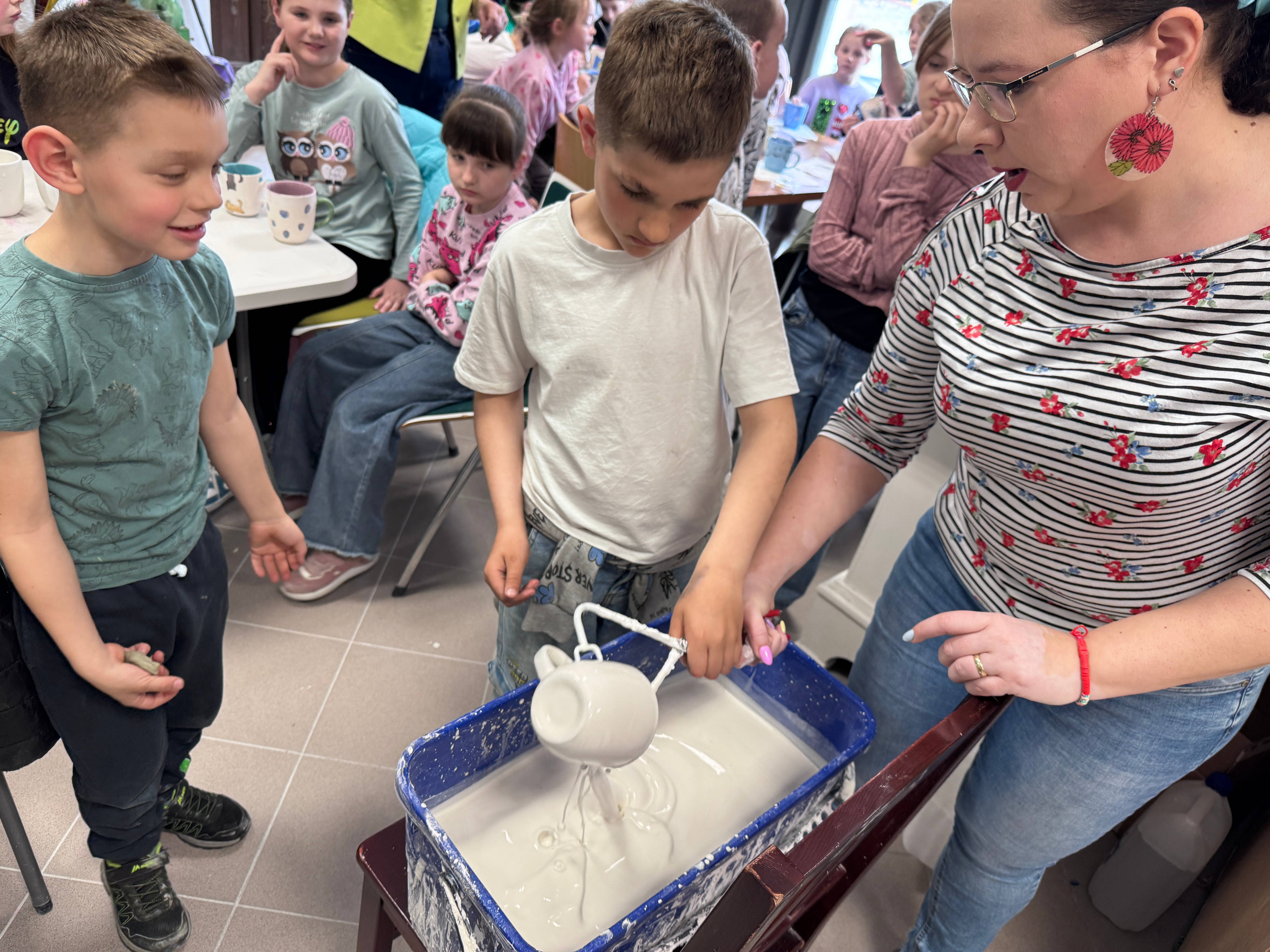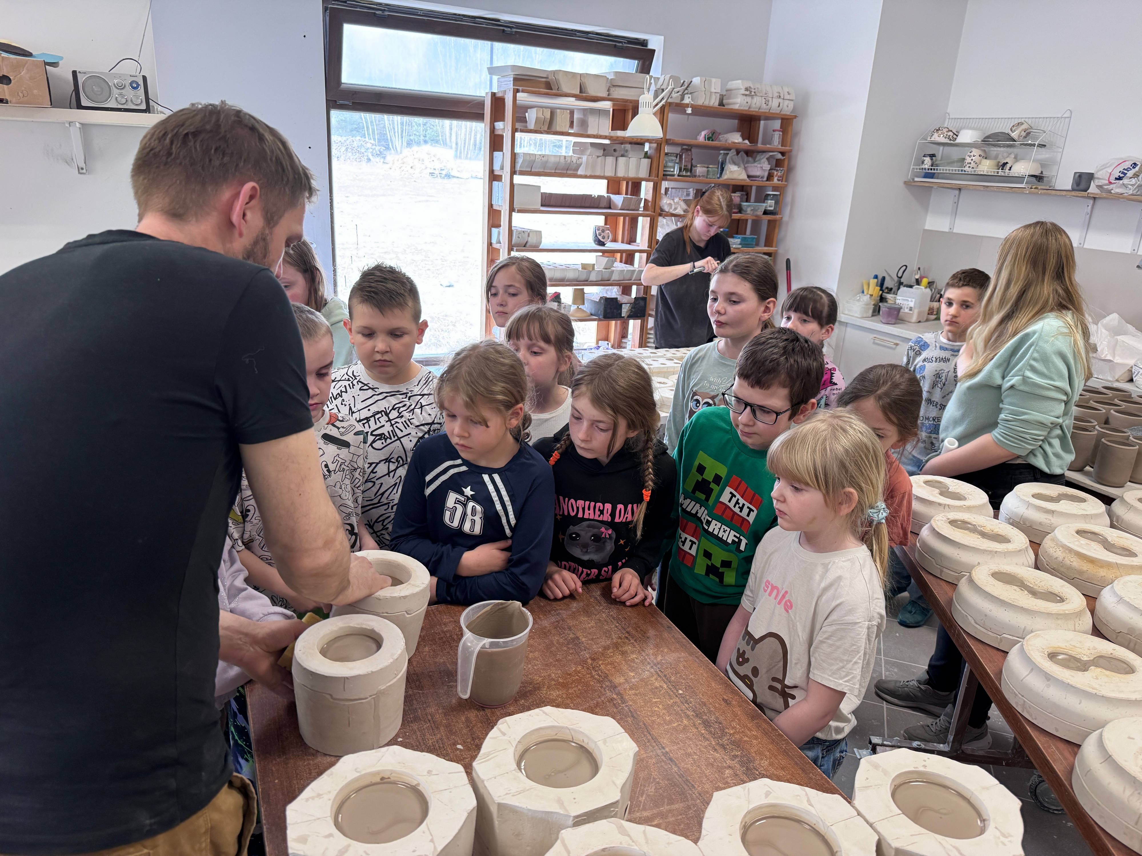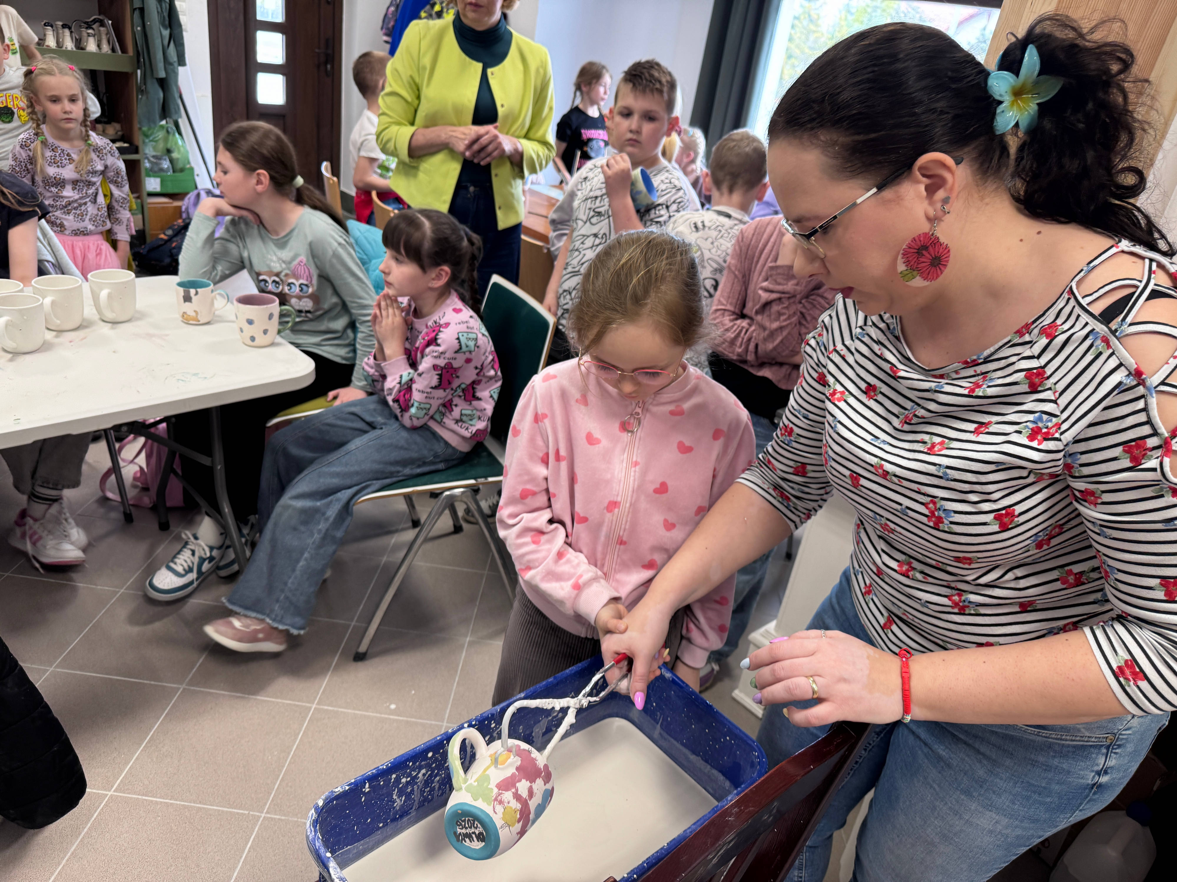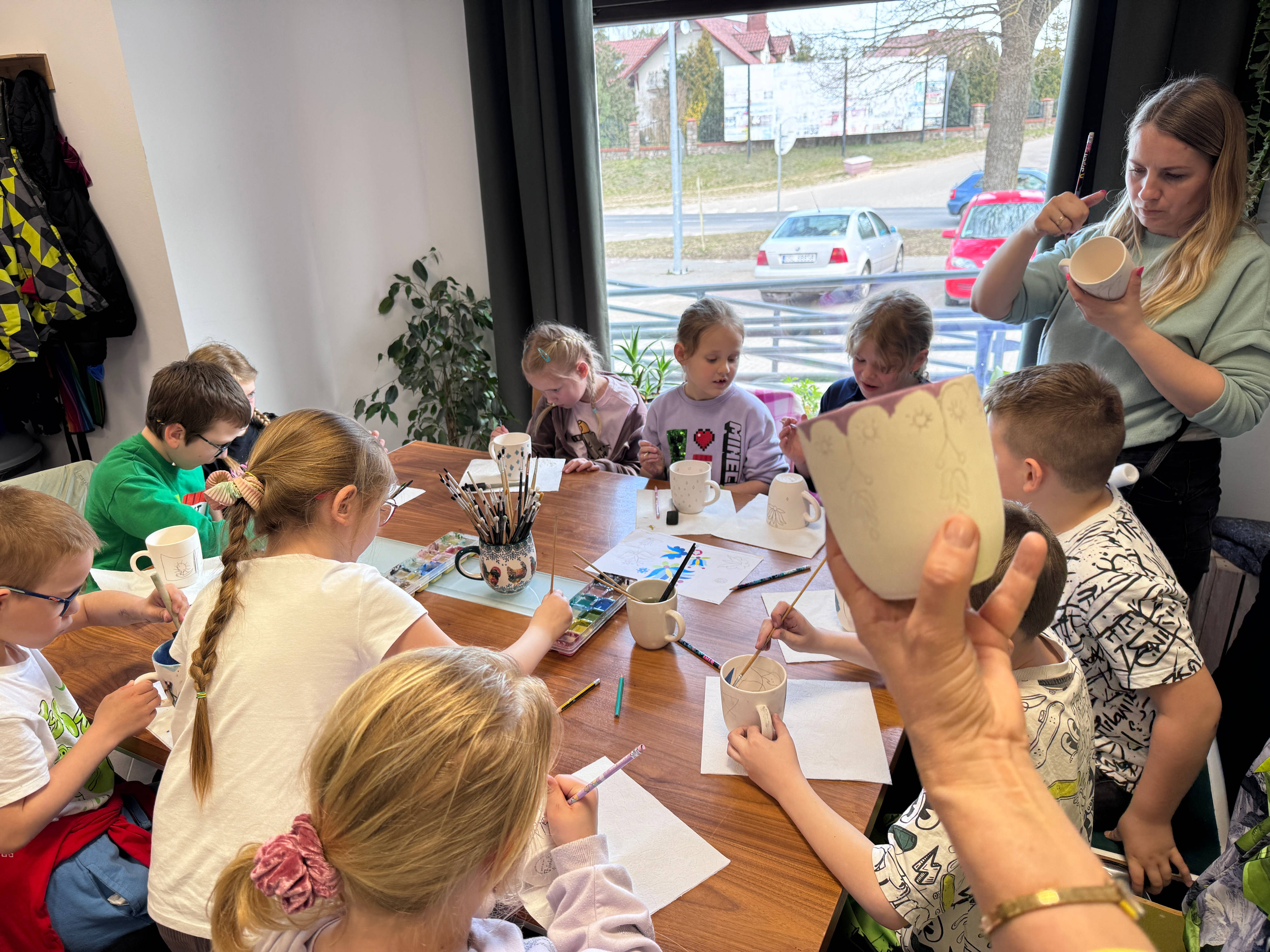 Uczniowie klas I–III uczący się języka kaszubskiego wzięli udział w wyjątkowych warsztatach ceramicznych, które odbyły się w Pracowni Ceramicznej Arbata. Podczas zajęć dzieci miały okazję nie tylko poznać podstawy pracy z ceramiką, ale również rozwijać swoją kreatywność i wrażliwość artystyczną. Głównym zadaniem uczestników było własnoręczne ozdabianie kubków z wykorzystaniem tradycyjnych motywów kaszubskich. Każdy kubek był niepowtarzalny i stanowił wyjątkową pamiątkę z warsztatów.
