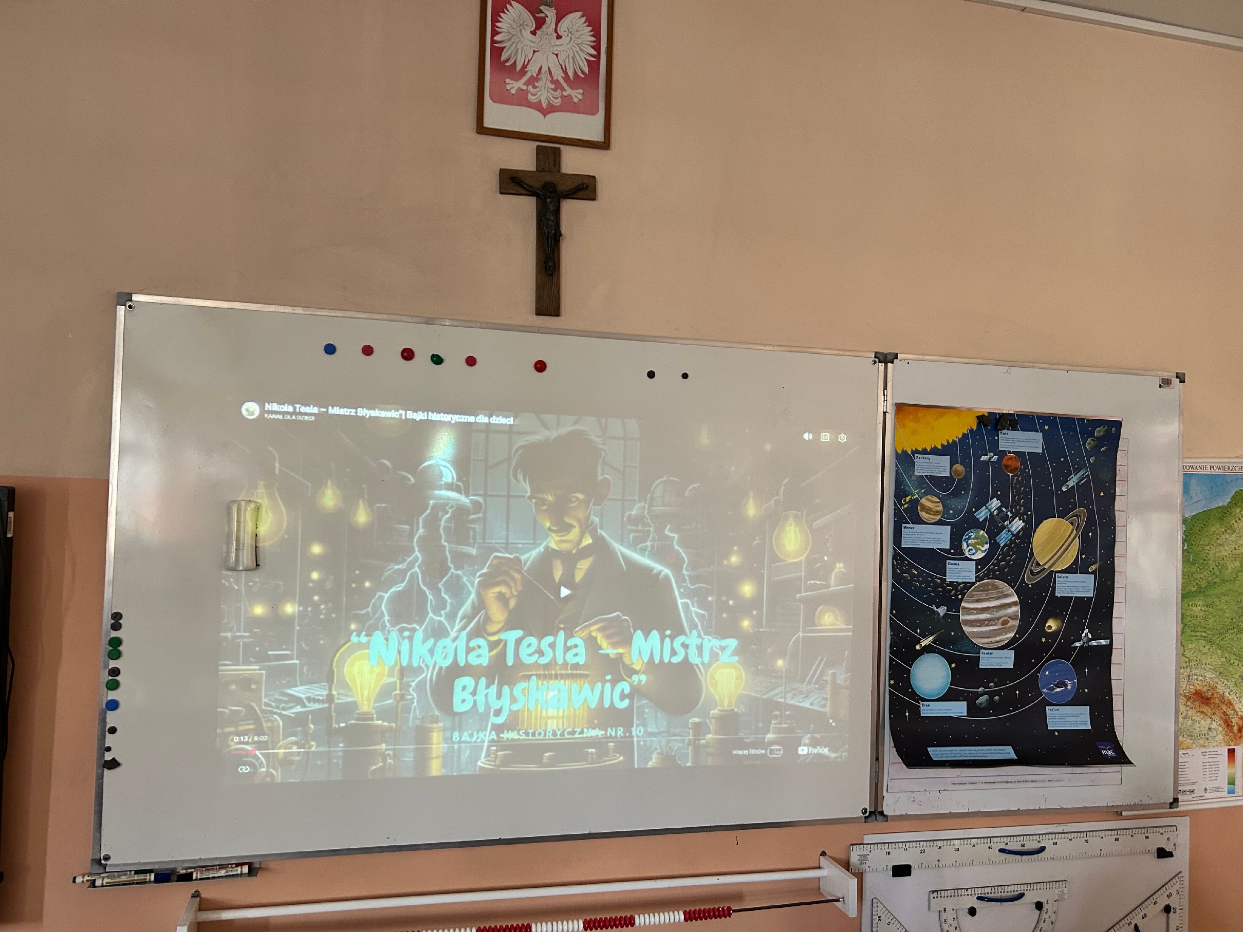 Kolejne zajęcia w ramach projektu „Luźne lekcje z naukowcami” dostarczyły uczniom klas I-III wielu ciekawych wrażeń i nowej wiedzy. Tym razem poznaliśmy postać wybitnego wynalazcy – Nikoli Tesli, który zasłynął swoimi przełomowymi odkryciami w dziedzinie elektryczności i magnetyzmu. Uczniowie dowiedzieli się, jak jego prace wpłynęły na rozwój współczesnej technologii oraz jak wiele zawdzięczamy jego pomysłom.