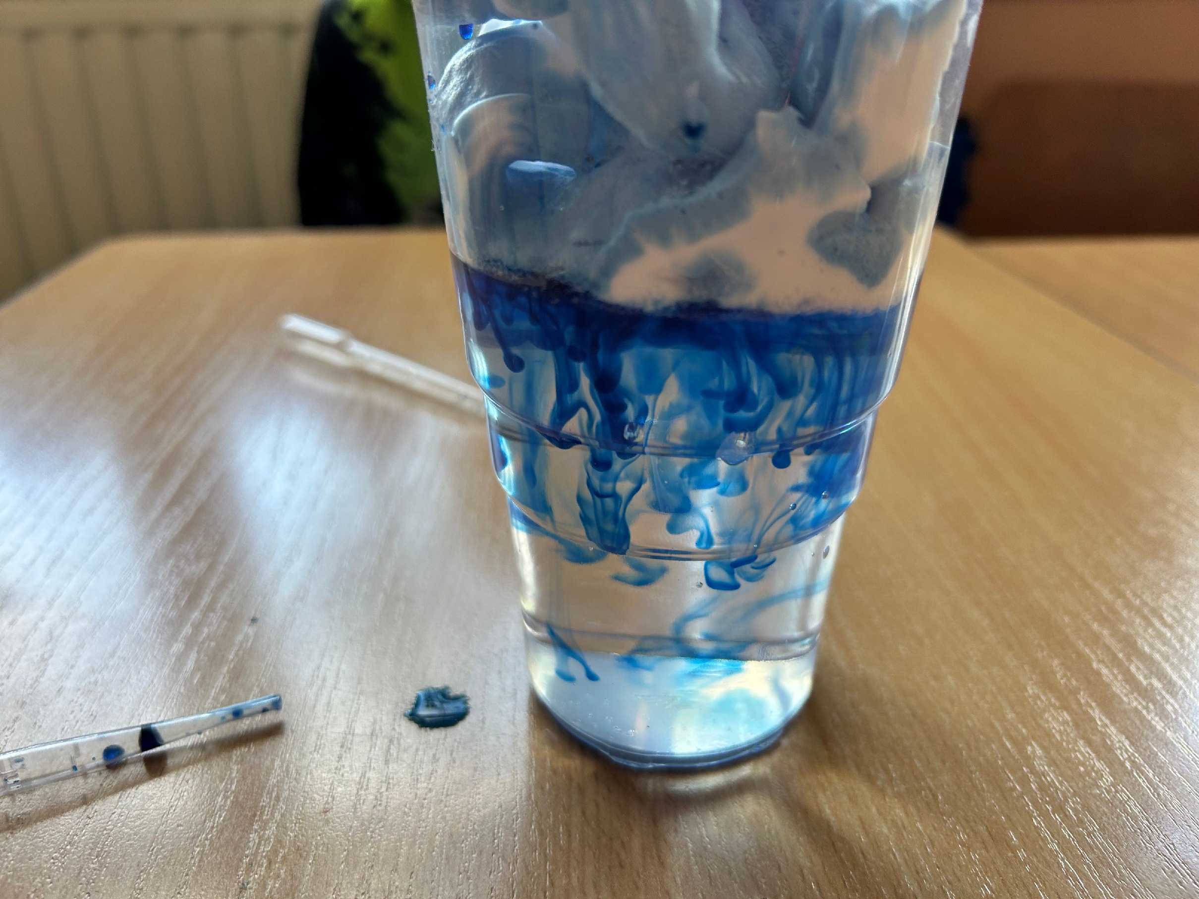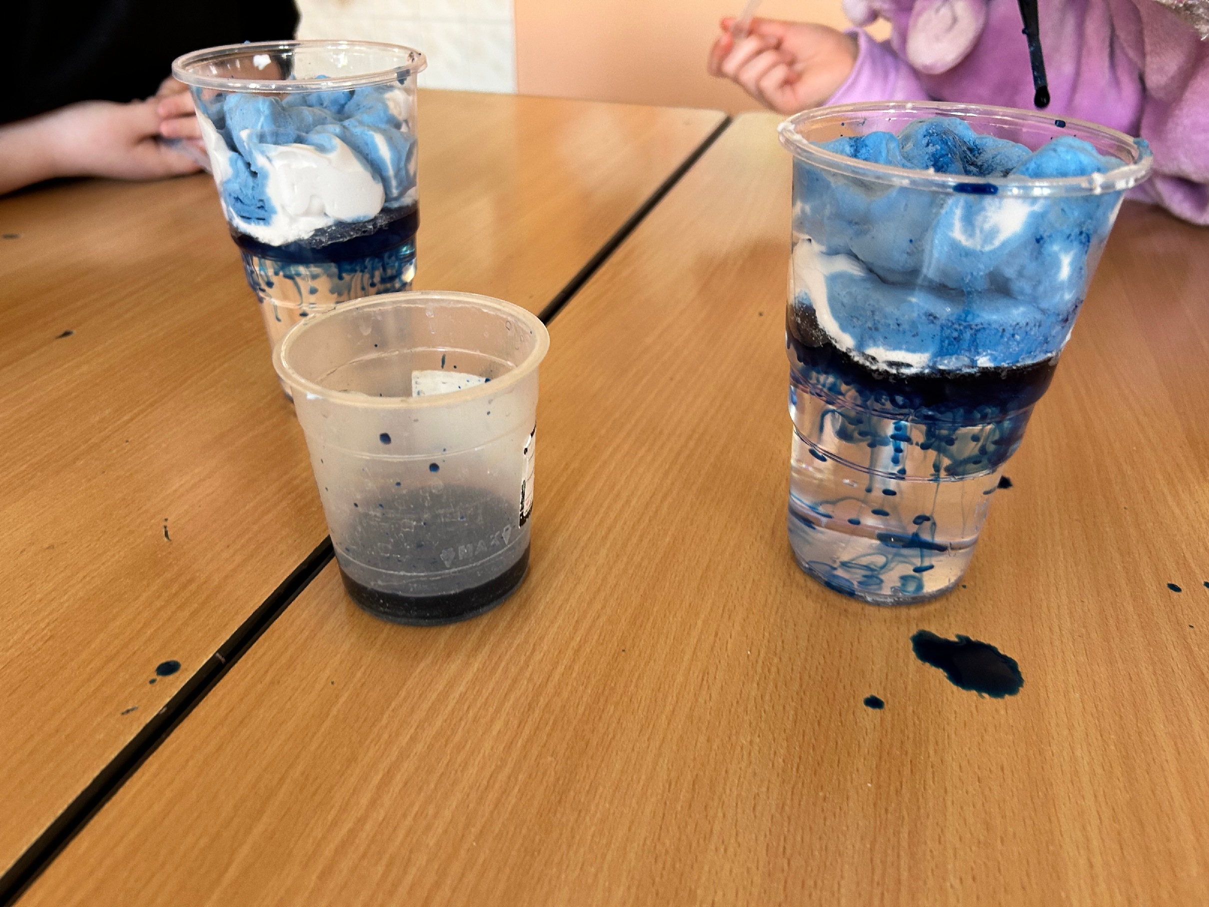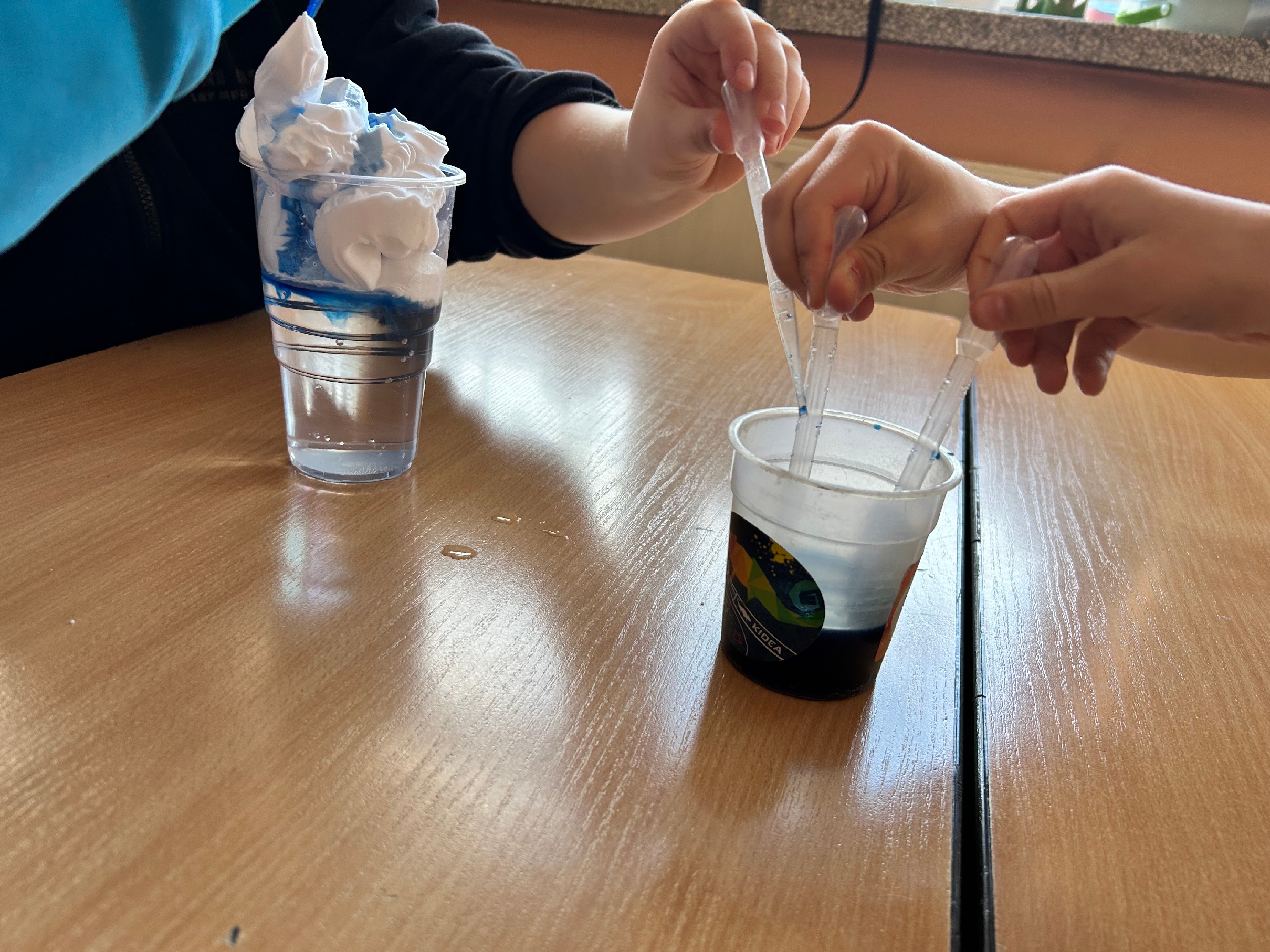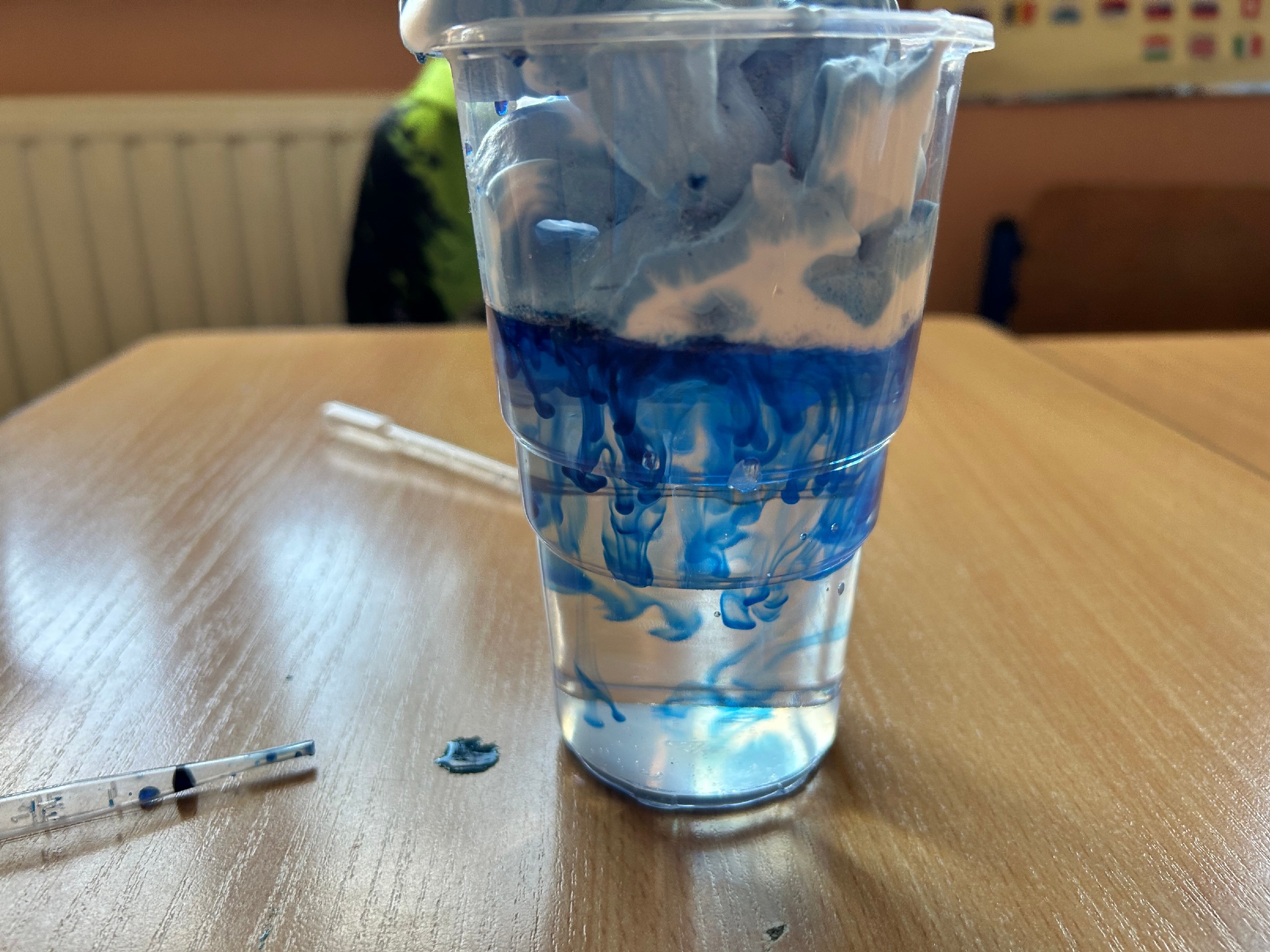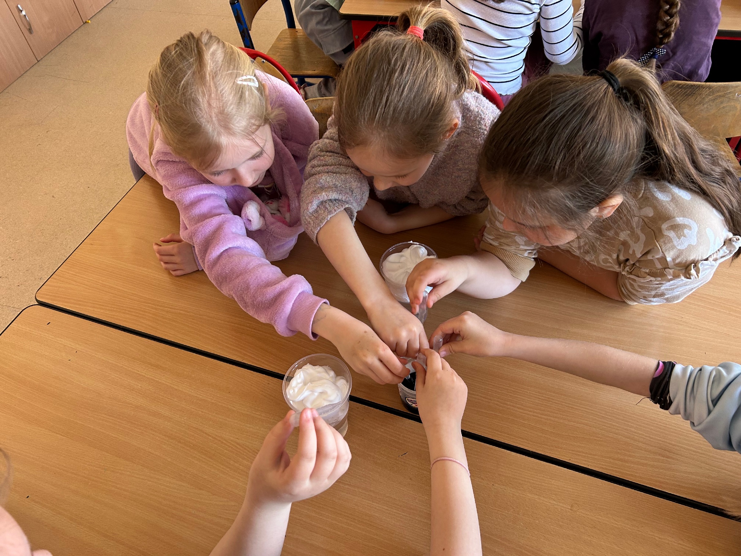 Podczas zajęć nie zabrakło również części praktycznej. Wspólnie wykonaliśmy doświadczenie „deszcz w słoiku”, które w ciekawy sposób pozwoliło zrozumieć zjawiska zachodzące w przyrodzie, takie jak powstawanie chmur i opadów. Eksperyment wzbudził duże zainteresowanie i zaangażowanie uczniów, którzy z entuzjazmem obserwowali jego przebieg. /AK, WG, JS/