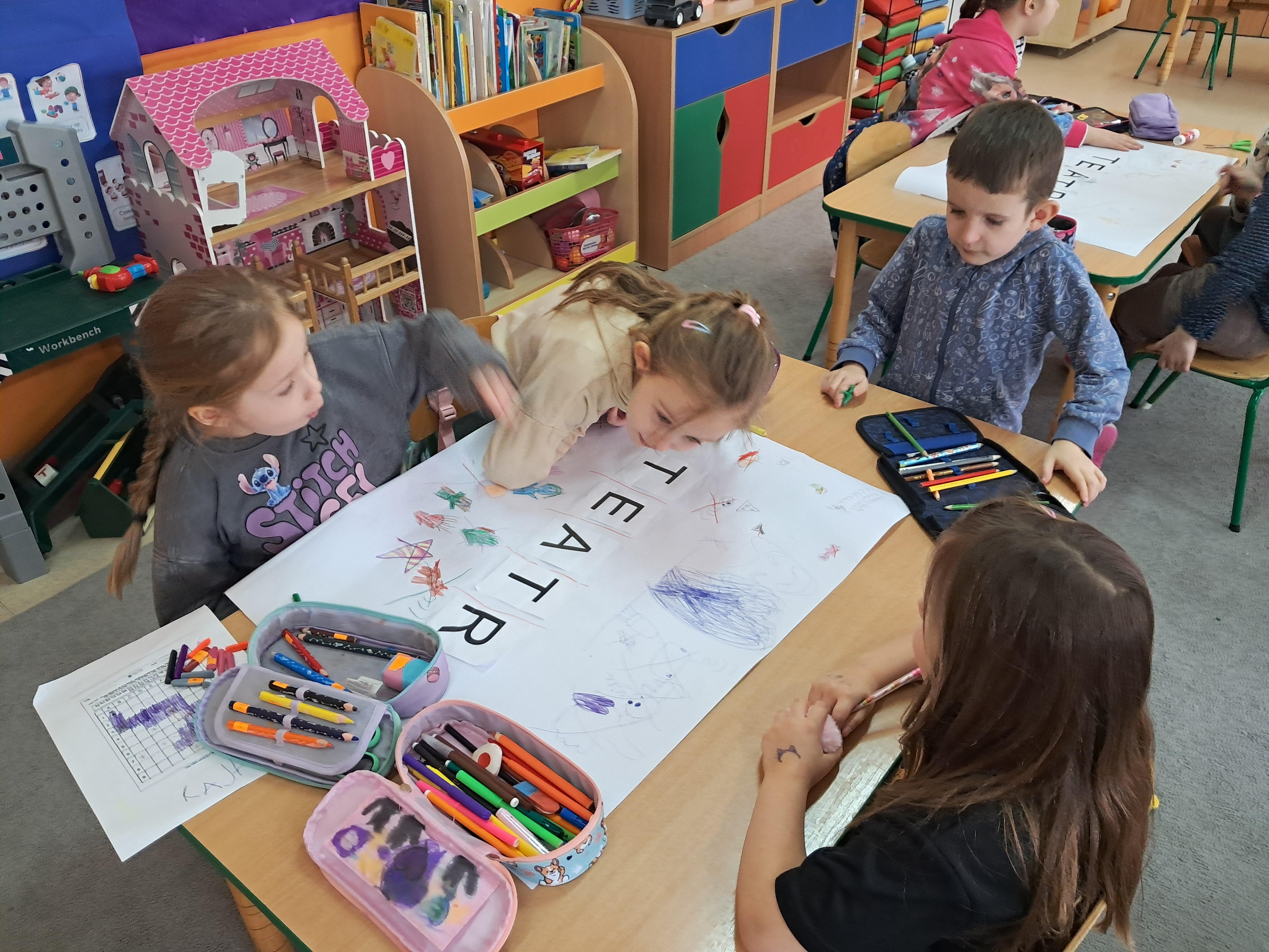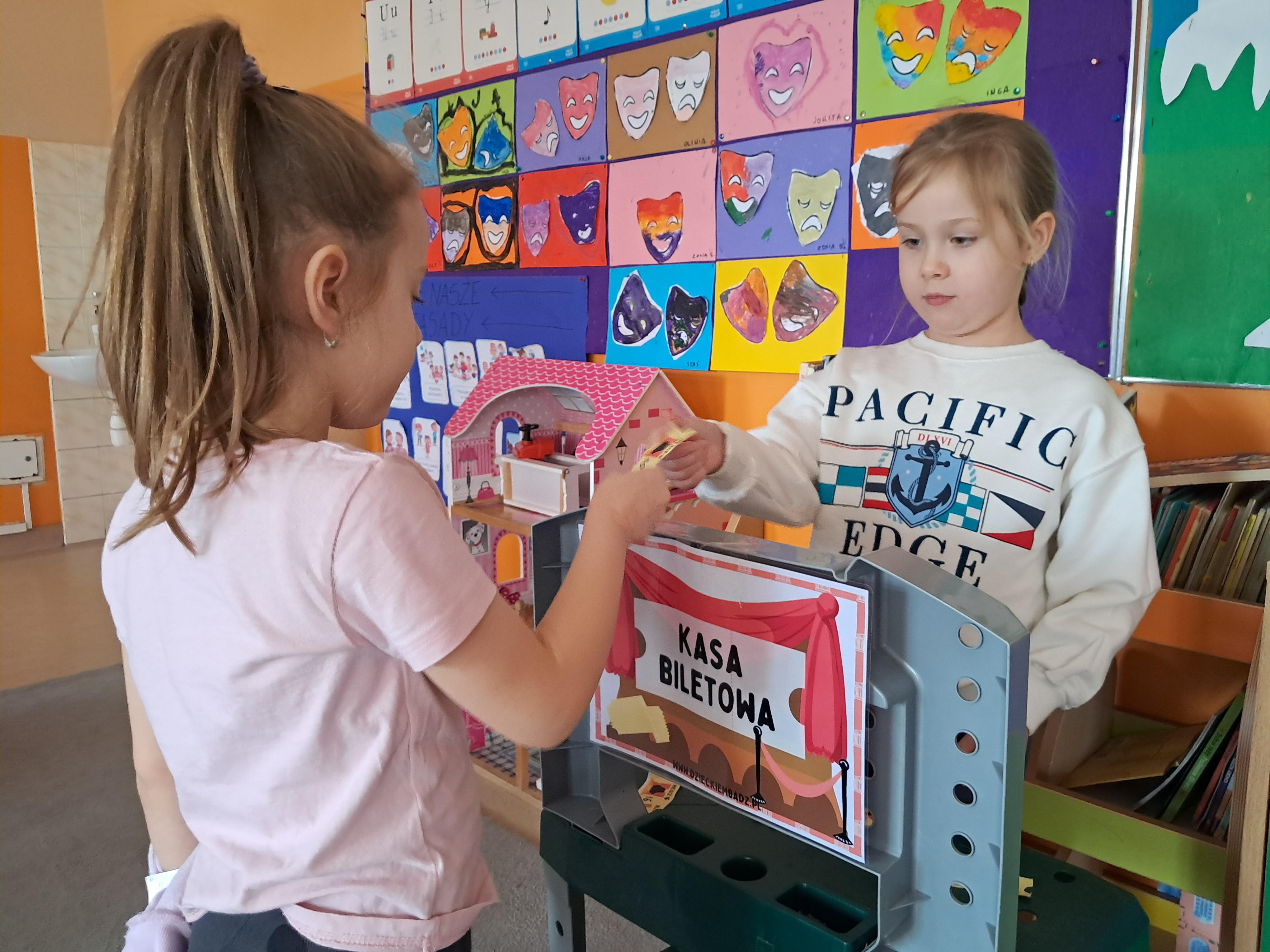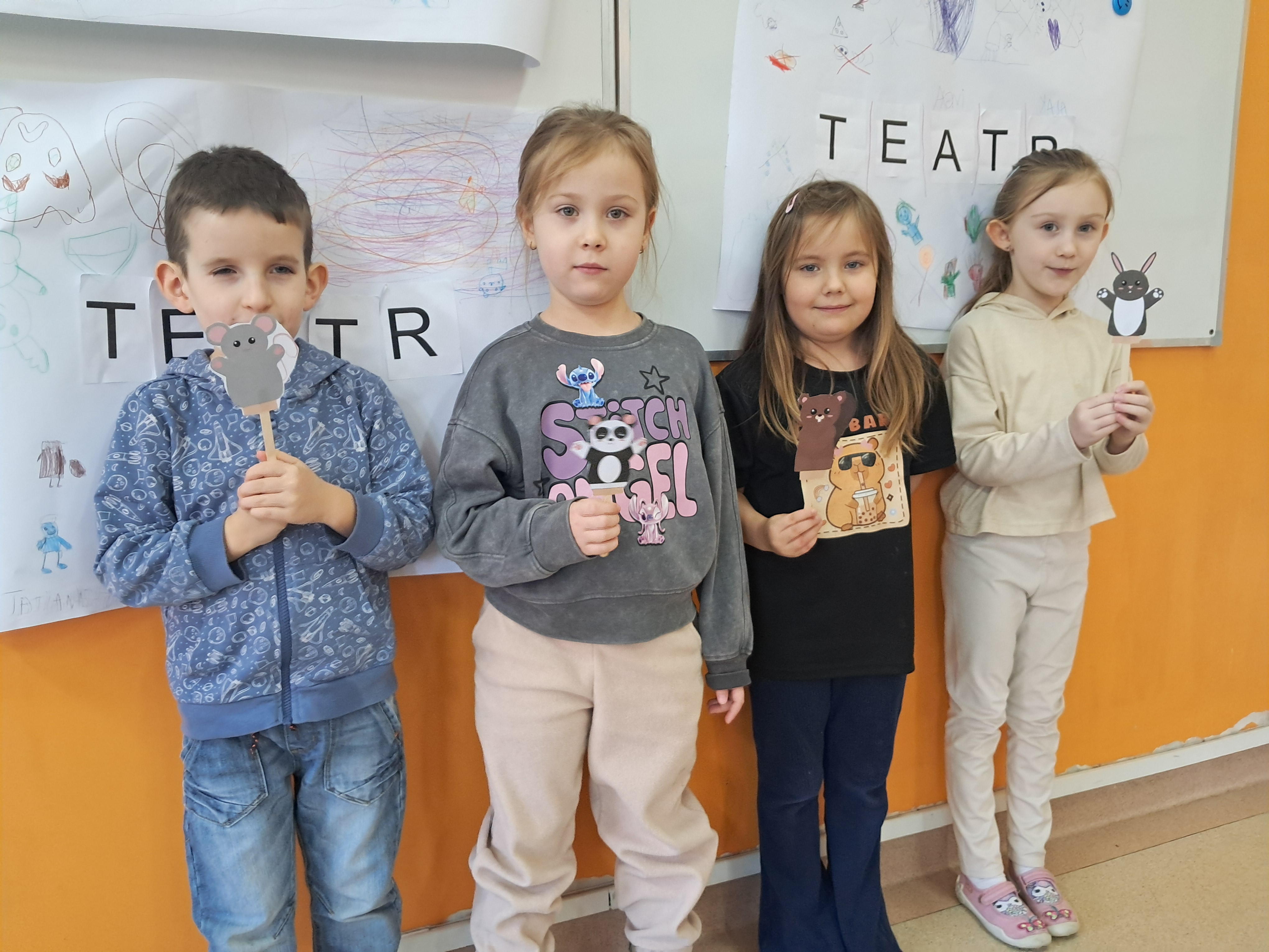 W minionym tygodniu w zerówce odbył się Tydzień Teatru. Dzieci z wielkim zaangażowaniem bawiły się w teatr, wcielając się w role aktorów i widzów. Wykonały kolorowe pacynki, które posłużyły im do odegrania krótkich, pomysłowych scenek. Podczas zabawy nie zabrakło także kasy biletowej. Dzieci kupowały bilety, a następnie zajmowały wyznaczone miejsca na widowni, ucząc się zasad obowiązujących w teatrze. Przedszkolaki stworzyły również plakaty przedstawiające ich skojarzenia z teatrem oraz poznały nowe pojęcia związane z tą dziedziną sztuki.