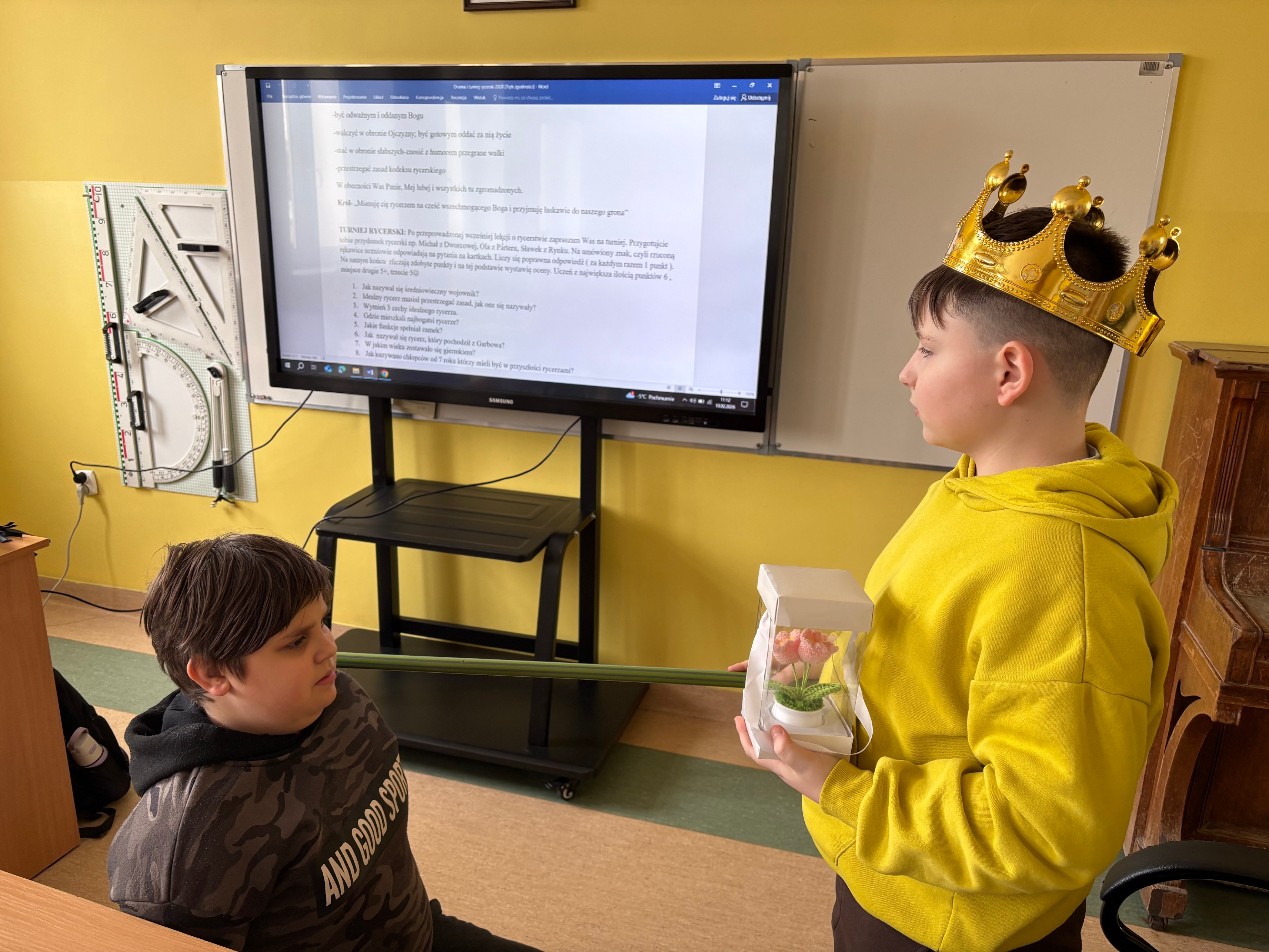 Dodatkowo uczniowie wcielili się w role historyczne, przygotowując krótkie scenki dramowe. Przedstawiali m.in. koronację Bolesława Chrobrego na króla Polski oraz uroczystość pasowania na rycerza. Dzięki temu mogli lepiej zrozumieć realia życia w średniowieczu oraz znaczenie tych wydarzeń dla historii Polski.