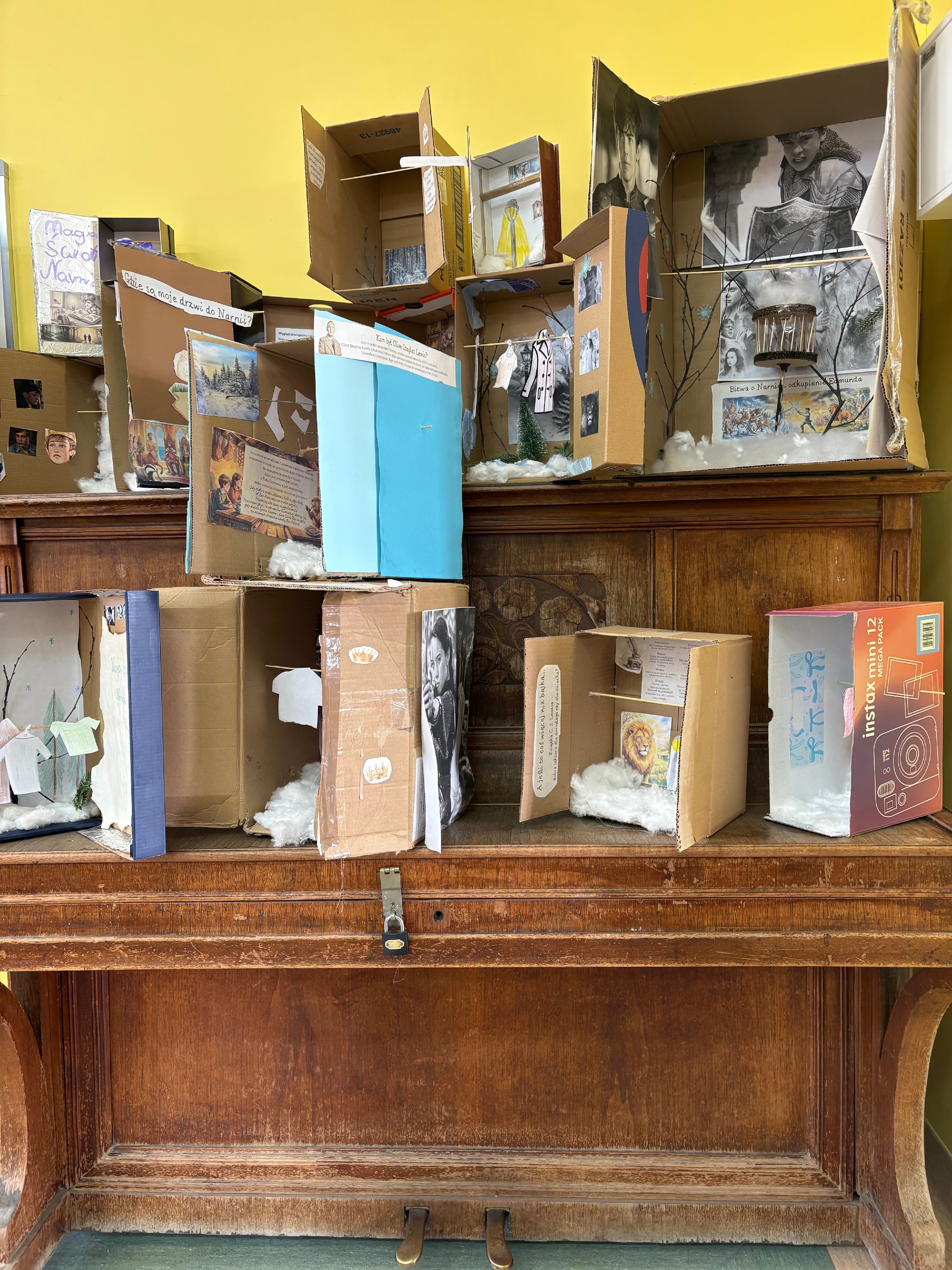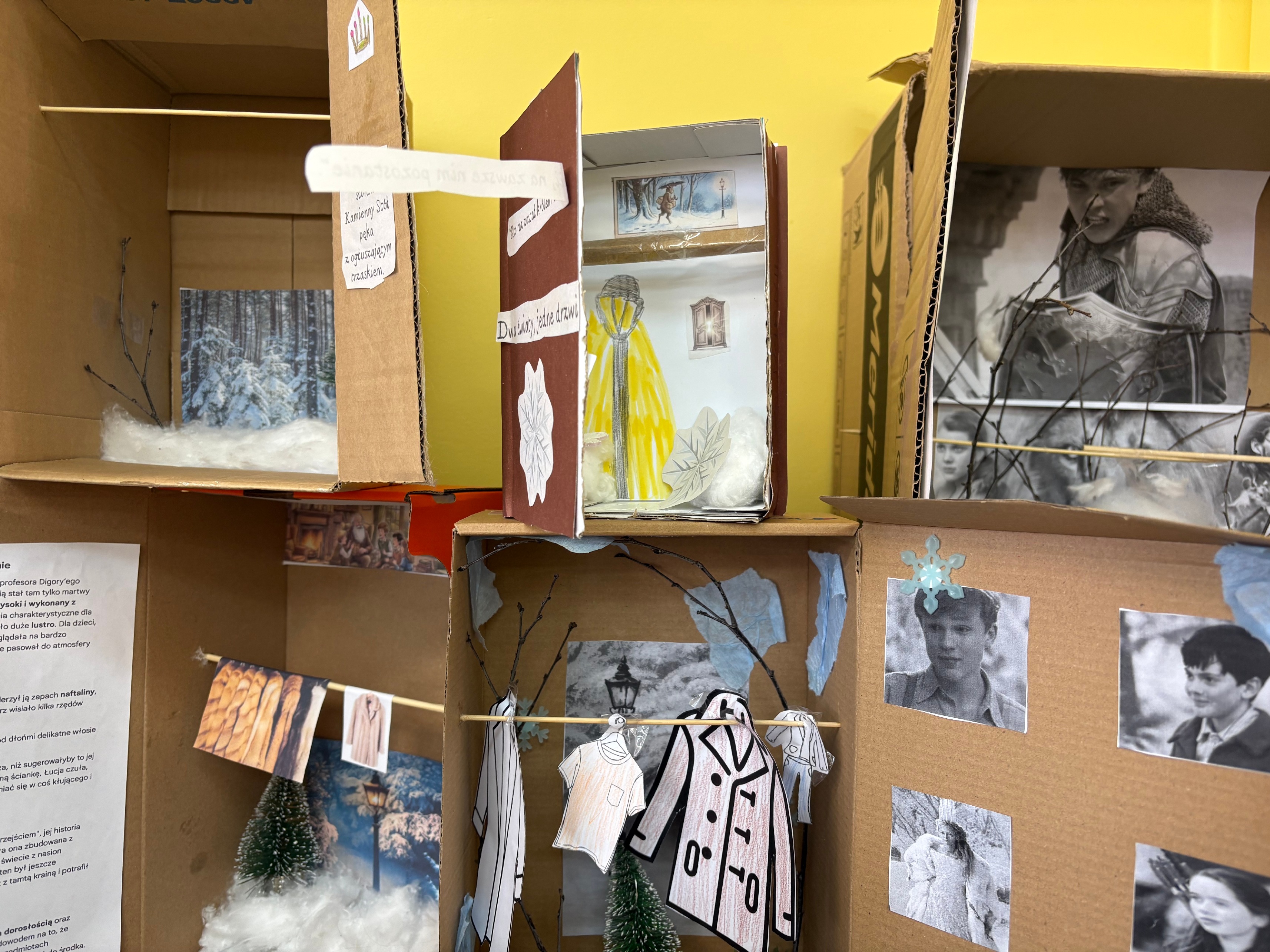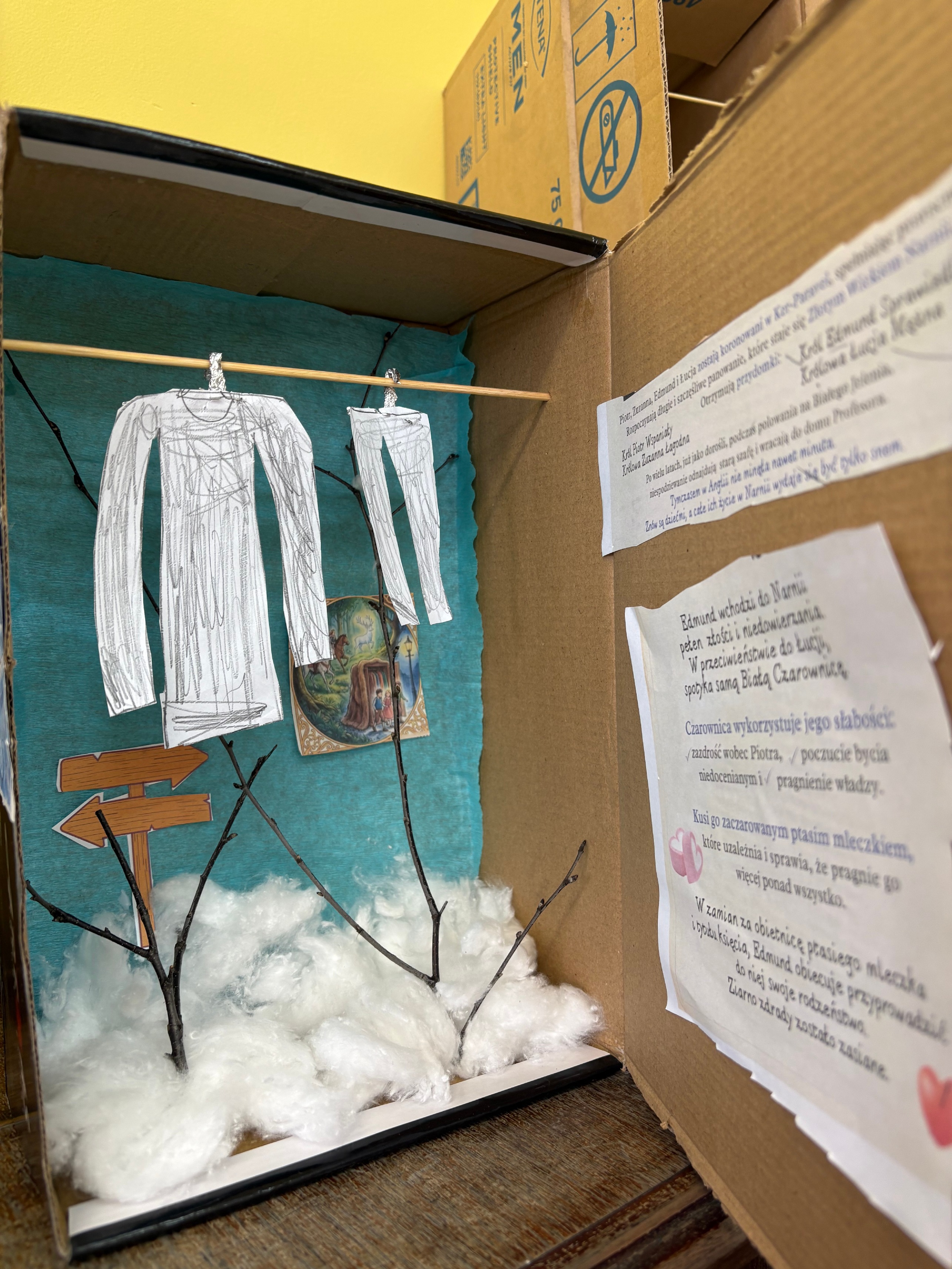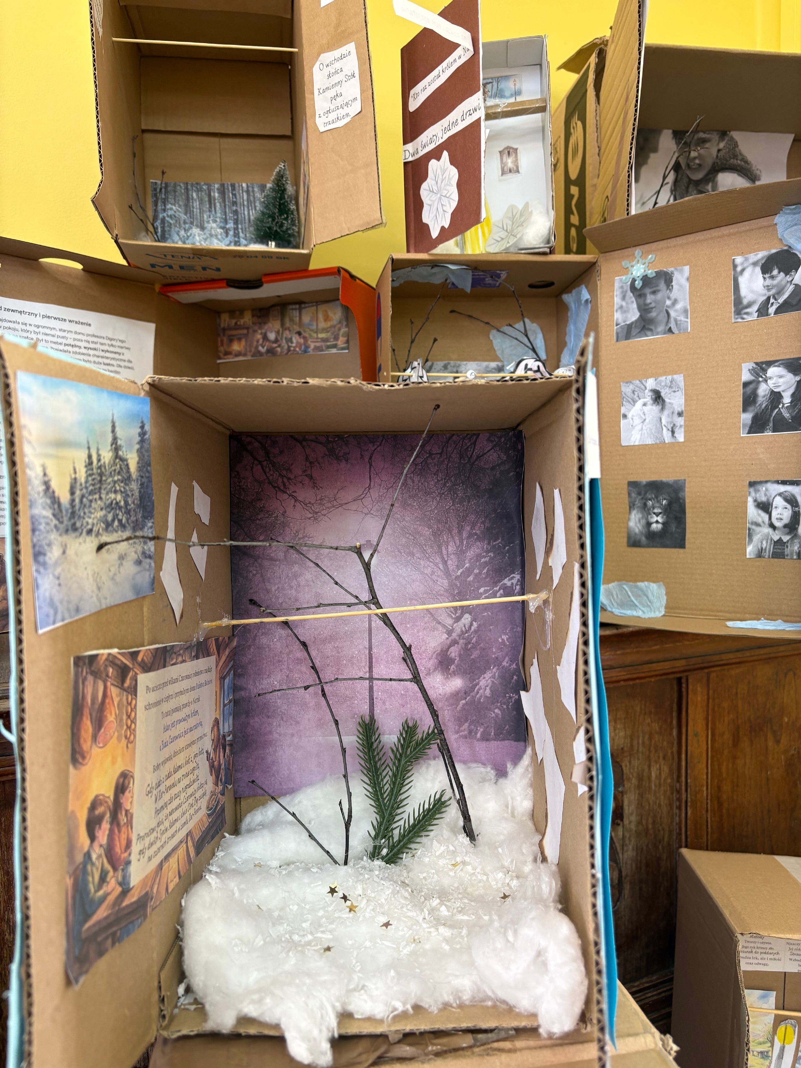 Dziś uczniowie klasy 4 prezentowali swoje projekty lekturowe związane z książką,,Opowieści z Narnii”. Powstały niezwykłe „szafy”, które przeniosły nas do świata Narnii – pełne śniegu, lamp, bohaterów i magicznych przedmiotów.