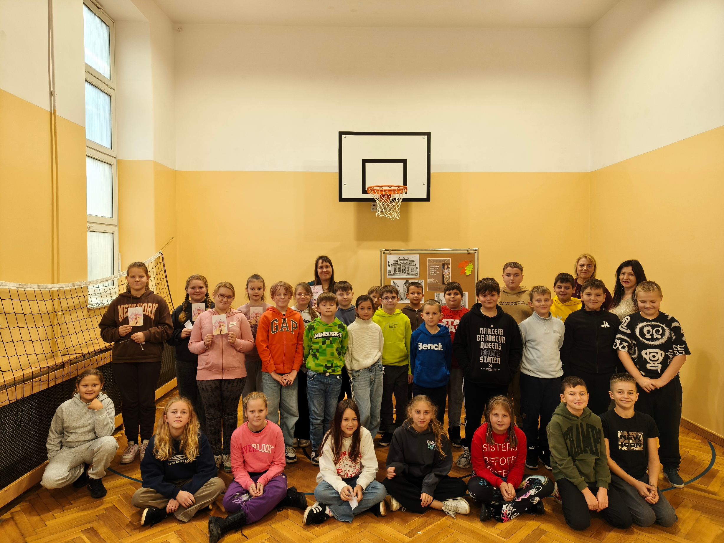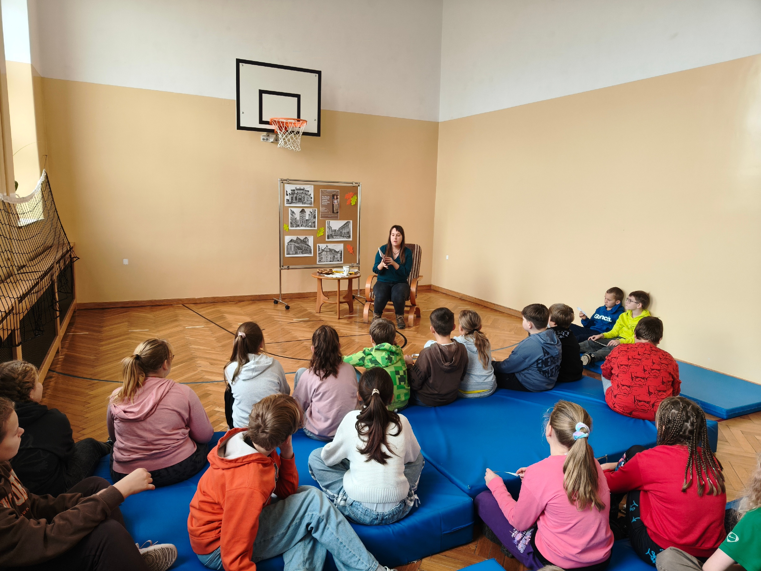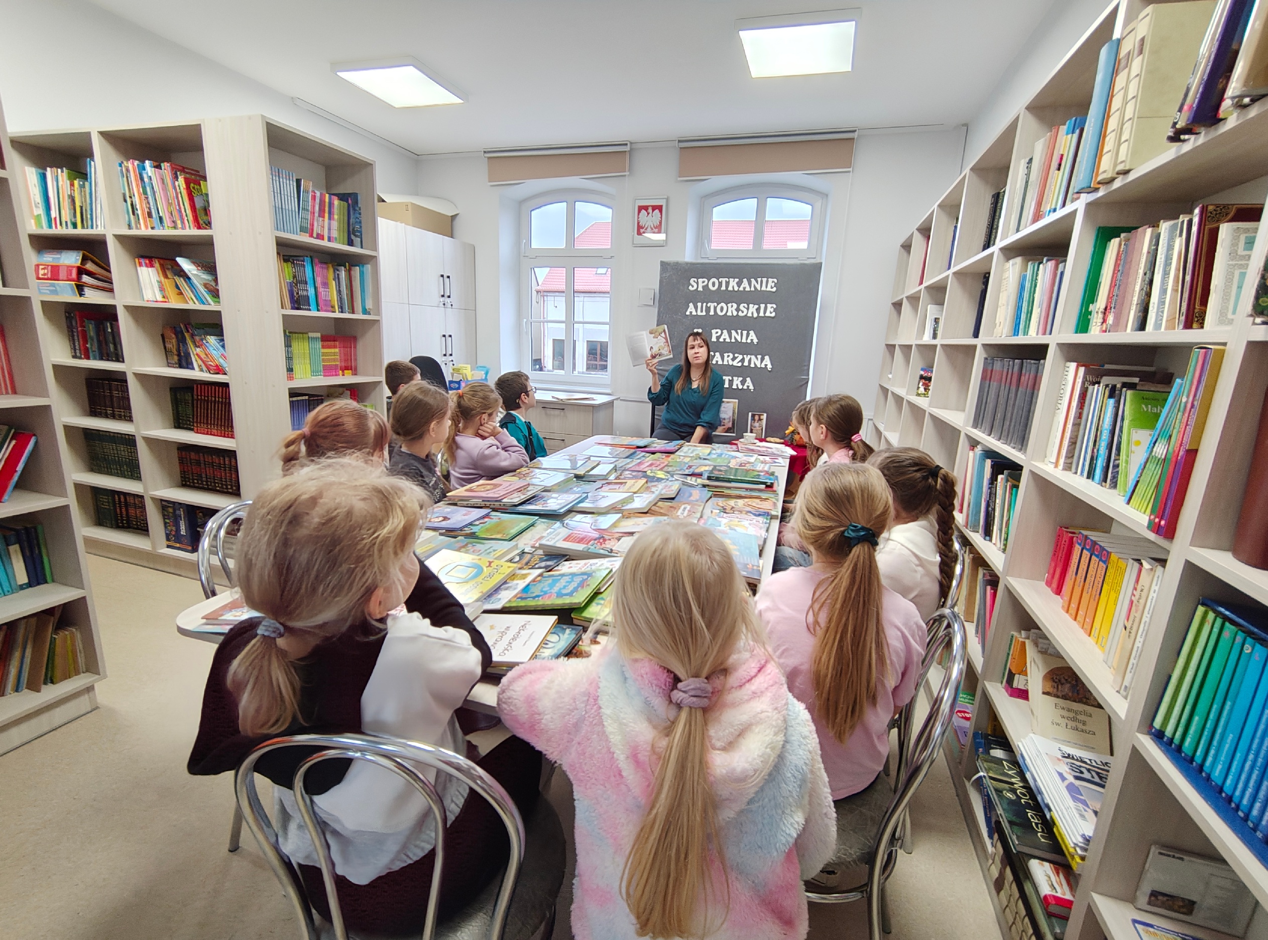 27 października odbyło się spotkanie autorskie z panią Katarzyną Pestką, autorką książki dla dzieci „Tajemnicze zaginięcie Matki Natury”. Akcja tej niezwykłej opowieści rozgrywa się w Chojnicach i Borach Tucholskich. W spotkaniu uczestniczyli uczniowie klas II, III, IV i V. Pisarka w ciekawy i przystępny sposób opowiedziała o etapach powstawania książki, zdradziła wiele interesujących ciekawostek z pracy pisarza oraz opowiedziała, z jakimi trudnościami spotyka się autor podczas tworzenia. Na zakończenie uczniowie wręczyli pisarce podziękowania oraz wspaniały bukiet jesiennych, ogrodowych kwiatów. Spotkanie bardzo się wszystkim podobało i dostarczyło wielu inspiracji. Z niecierpliwością czekamy na kolejne książki pani Katarzyny Pestki, szczególnie na zapowiadany przewodnik rowerowy, w którym autorka opisze trasę rowerową po Kosznajderii. Serdecznie dziękujemy Radzie Rodziców za sfinansowanie spotkania, a tym samym nieustanne wspieranie naszych działań edukacyjnych i kulturalnych. /LKS,KR/