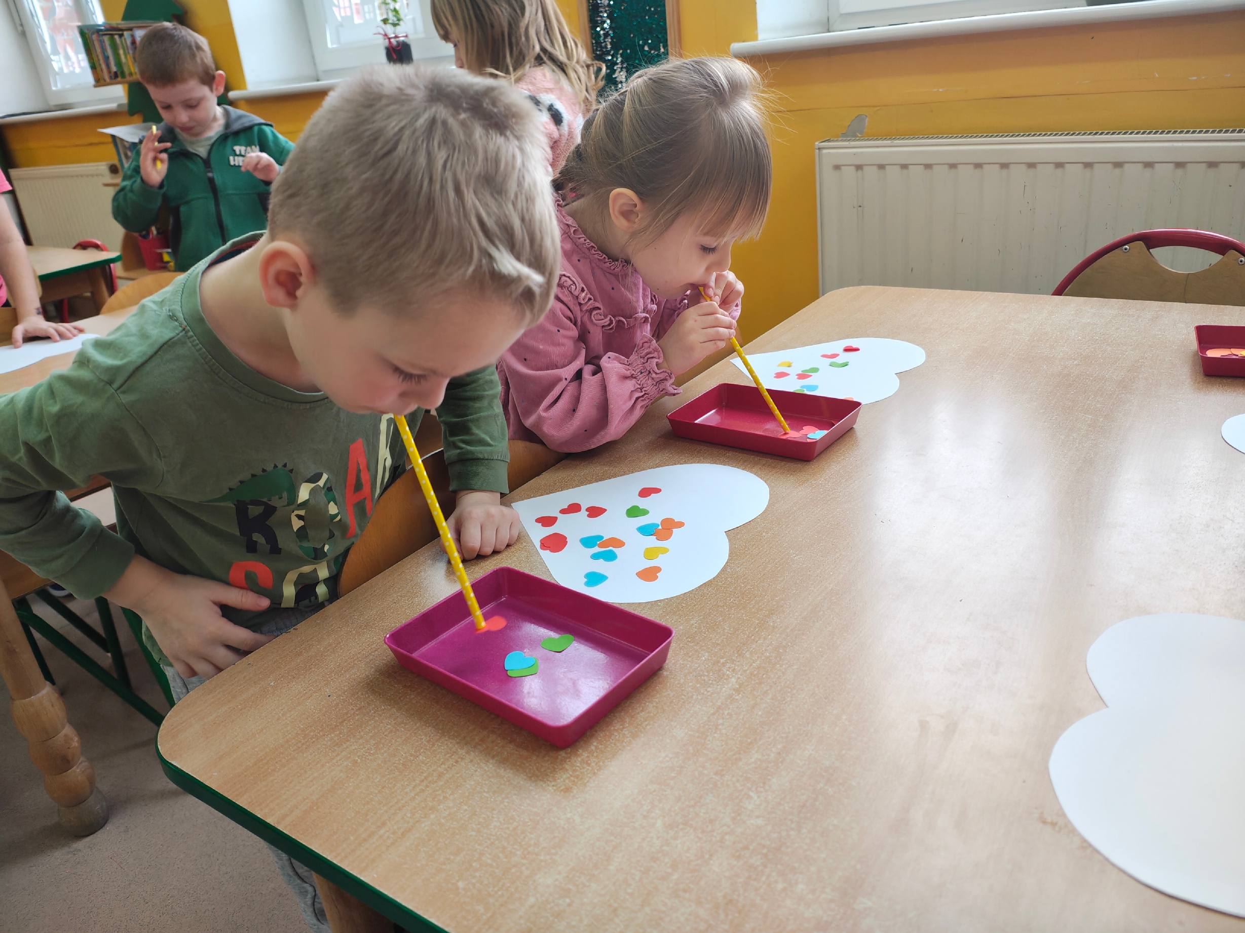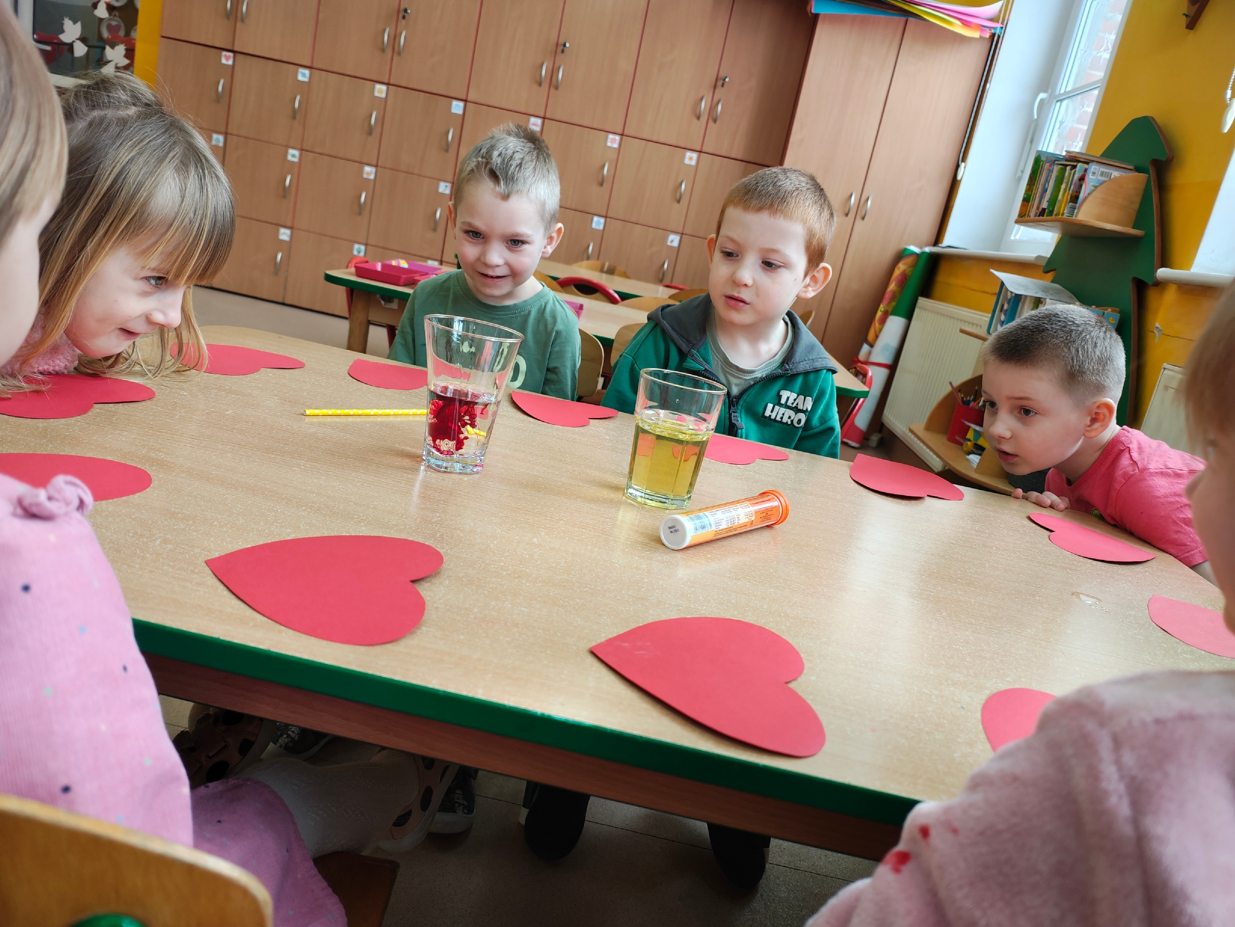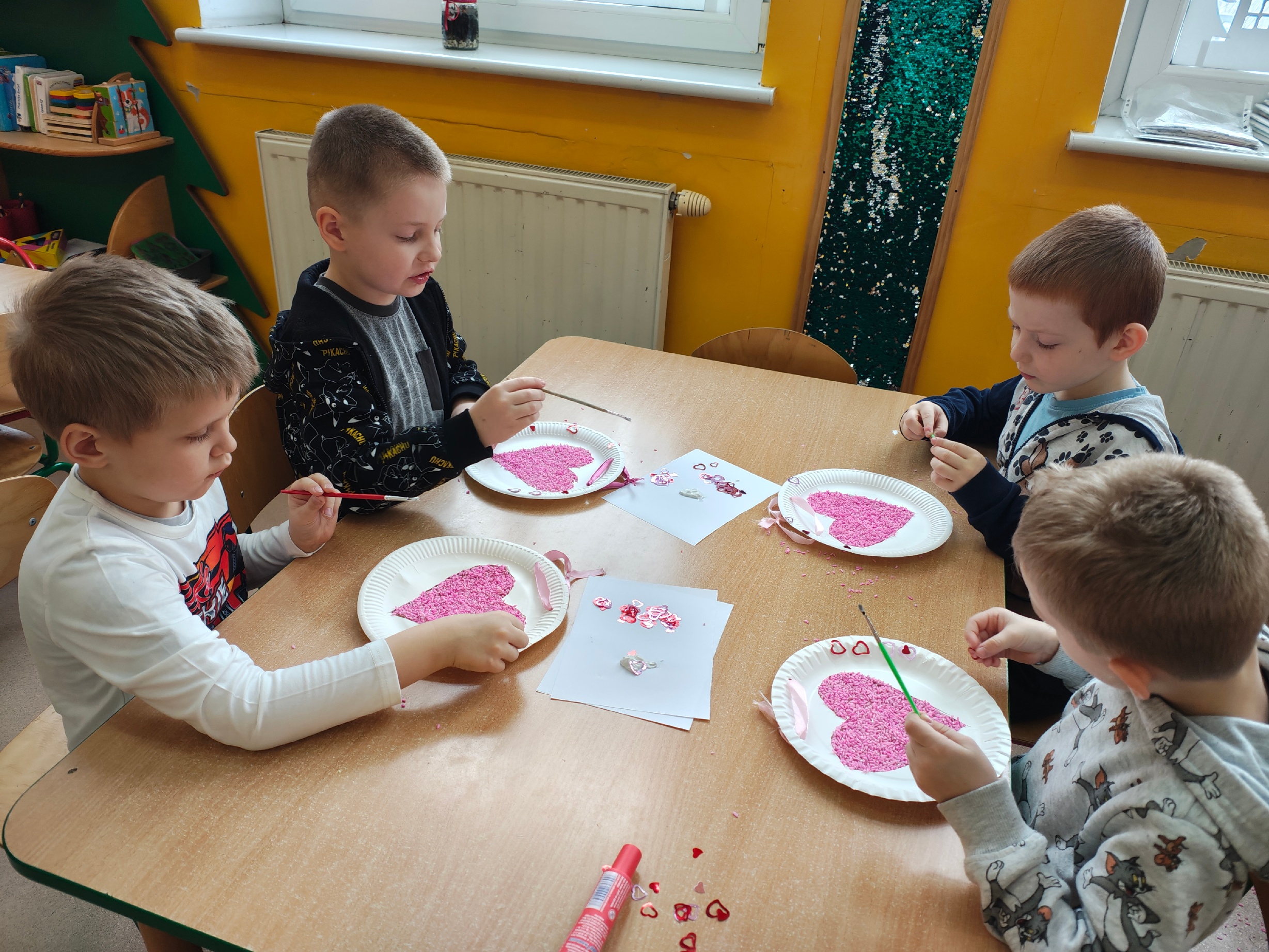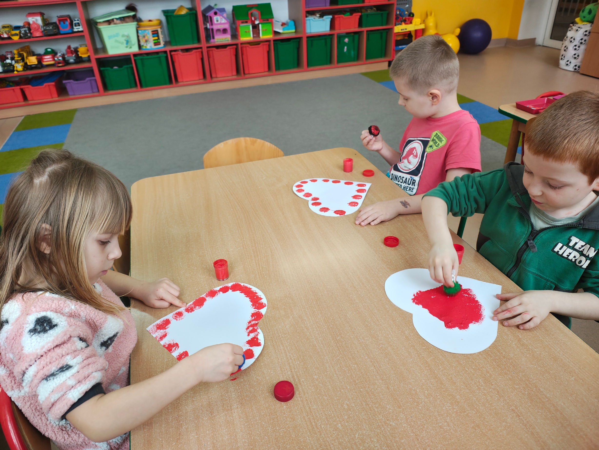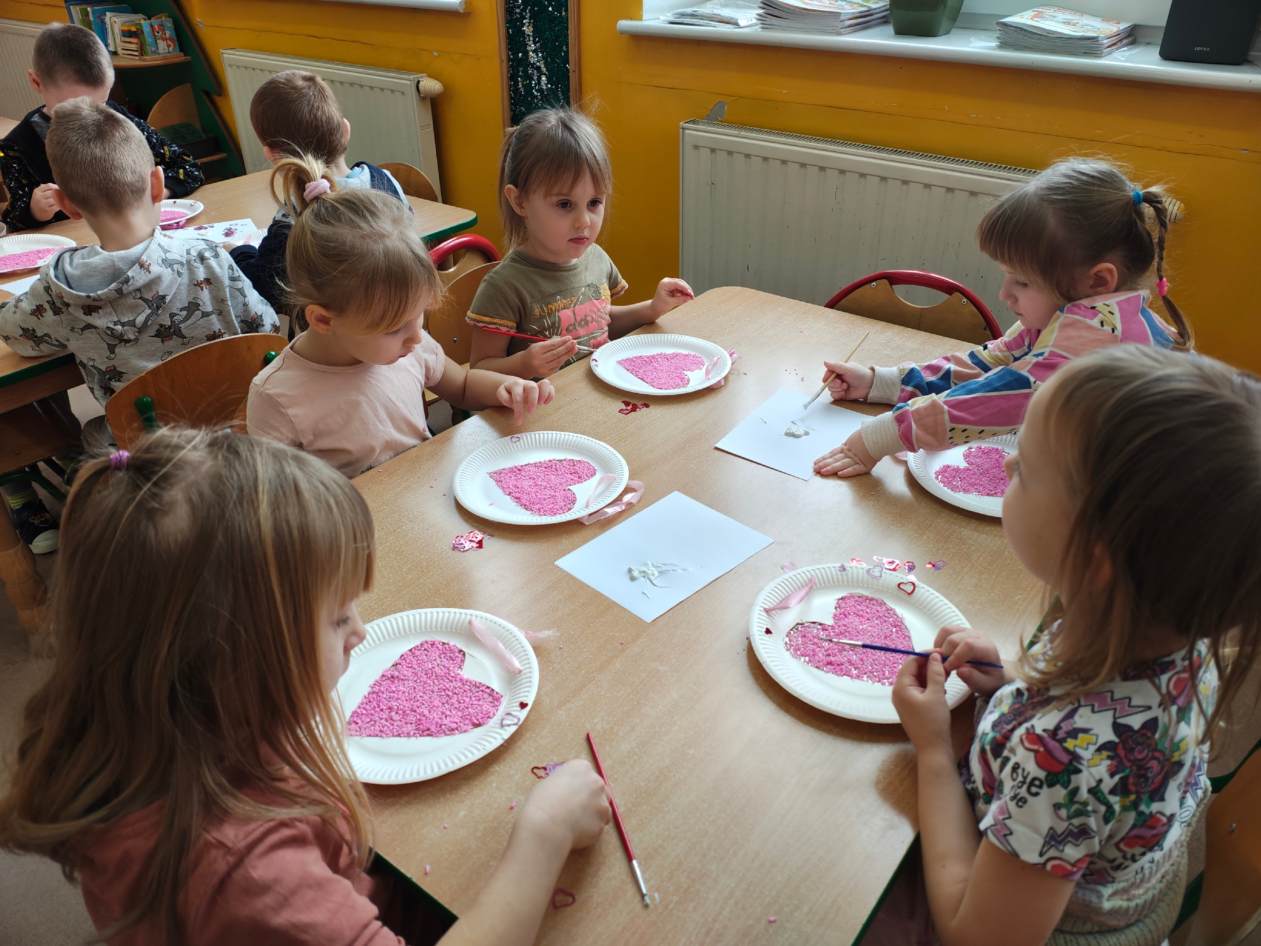 W naszym oddziale przedszkolnym odbyły się zabawy walentynkowe. Dzieci z zaangażowaniem uczestniczyły w różnych aktywnościach: wykonały kolorowe serduszka wykorzystując do tego ryż i farby, przeprowadziły eksperyment "Wulkan miłości", rywalizowały na dywanie. Nie zabrakło również rozmów o życzliwości i okazywaniu sobie dobrych uczuć. /KR/