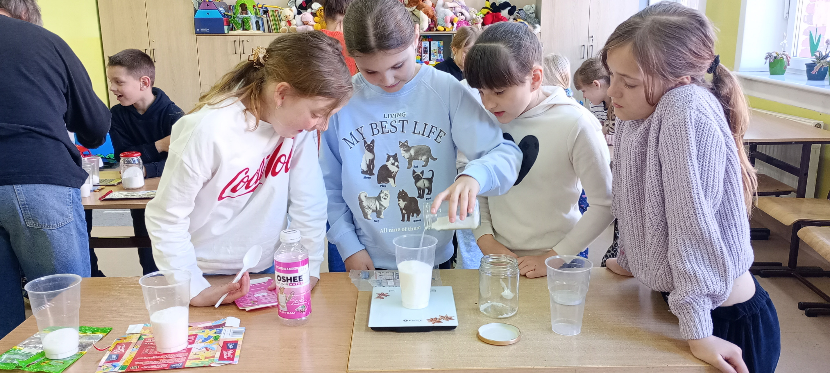 Podczas warsztatów z dietetyczką panią Aliną Pasionek-Sikorą, uczniowie kl.1-3, dowiedzieli się, jak ważne jest zdrowe i świadome odżywianie. Szczególną uwagę poświęcono czytaniu etykiet na produktach spożywczych. Dzieci dowiedziały się, że nadmiar cukru może negatywnie wpływać na zdrowie, dlatego warto ograniczać słodycze i słodzone napoje, zastępując je zdrowszymi alternatywami, np. owocami.