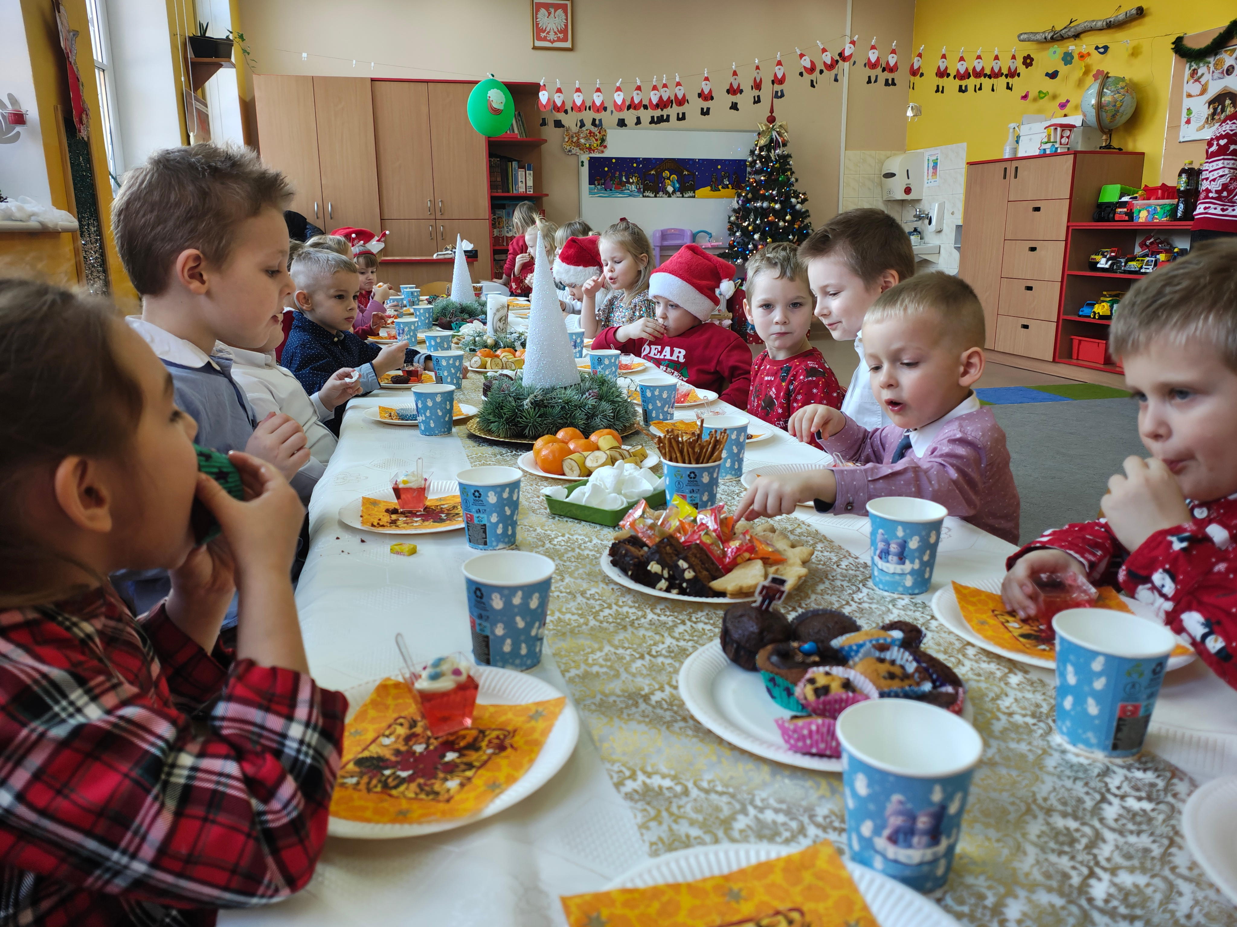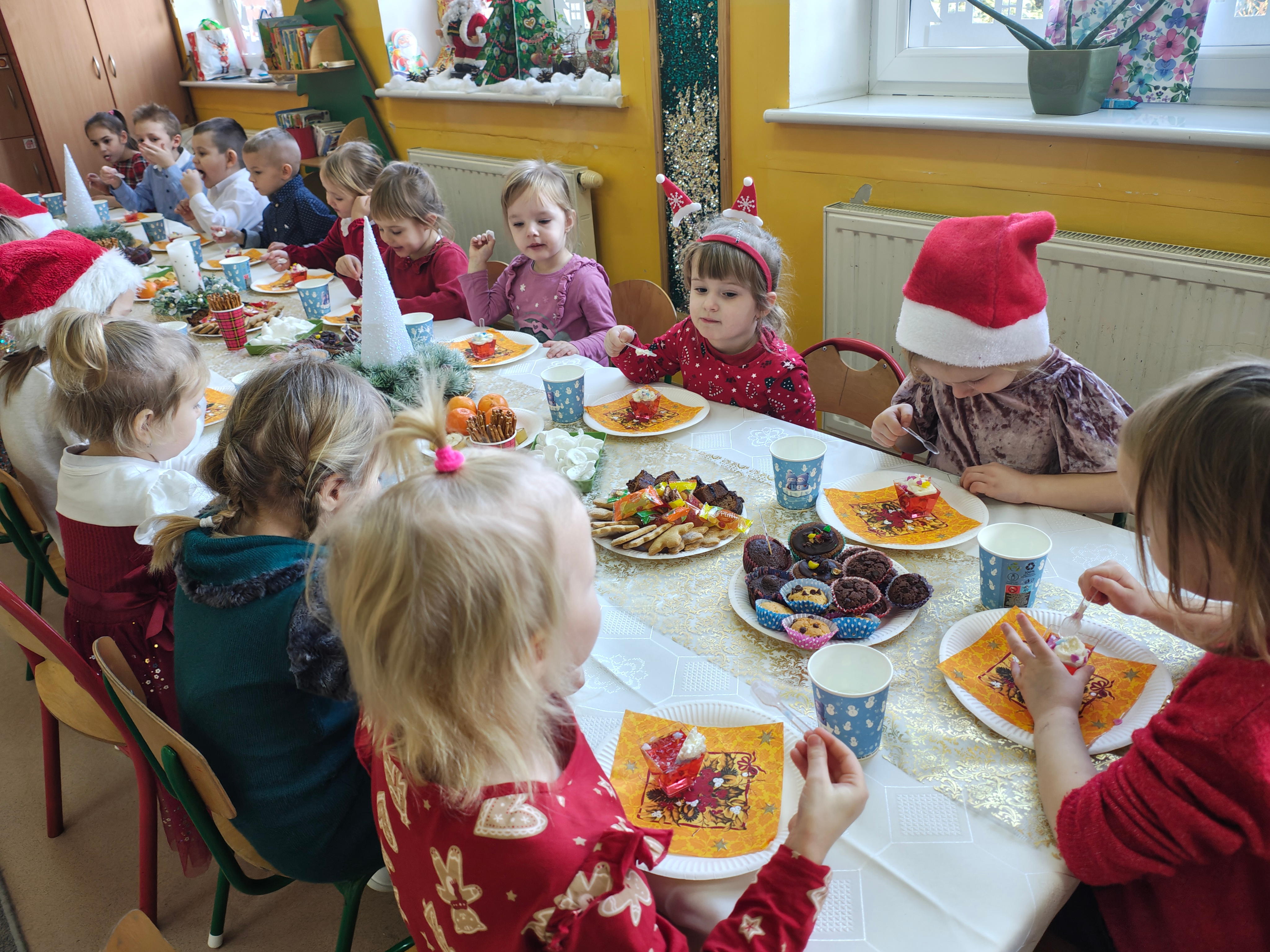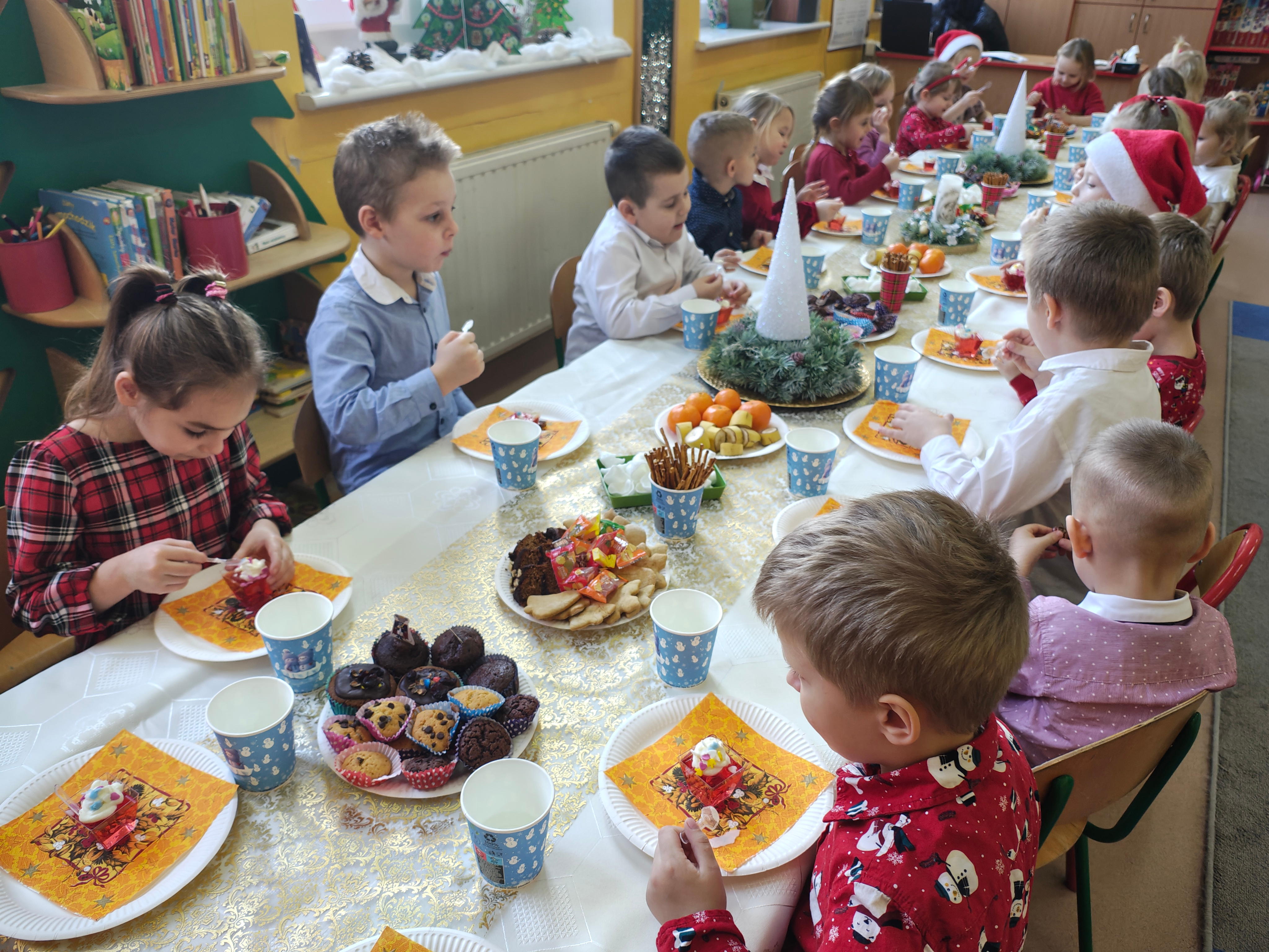 W naszych oddziałach przedszkolnych odbyły się Wigilie klasowe. Rodzice przygotowali świąteczny poczęstunek dla dzieci. W miłej i radosnej atmosferze złożyliśmy sobie życzenia, śpiewaliśmy kolędy, a także obejrzeliśmy jasełka przygotowane przez starszych kolegów i koleżanki. Był to dla nas wyjątkowy czas pełen świątecznego nastroju. /KR/